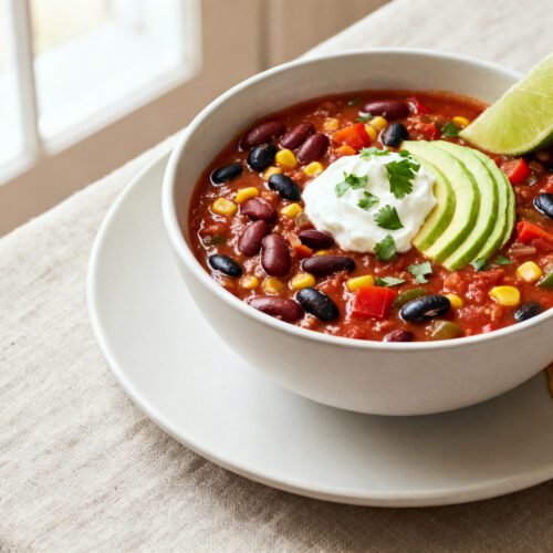 This vegetarian chili delivers bold, cozy flavor with simple ingredients and smart technique. It’s thick, hearty, and weeknight-easy, yet special enough for game day or a casual dinner party. Make a big pot, load up the toppings, and enjoy the kind of meal that brings everyone back for seconds.
