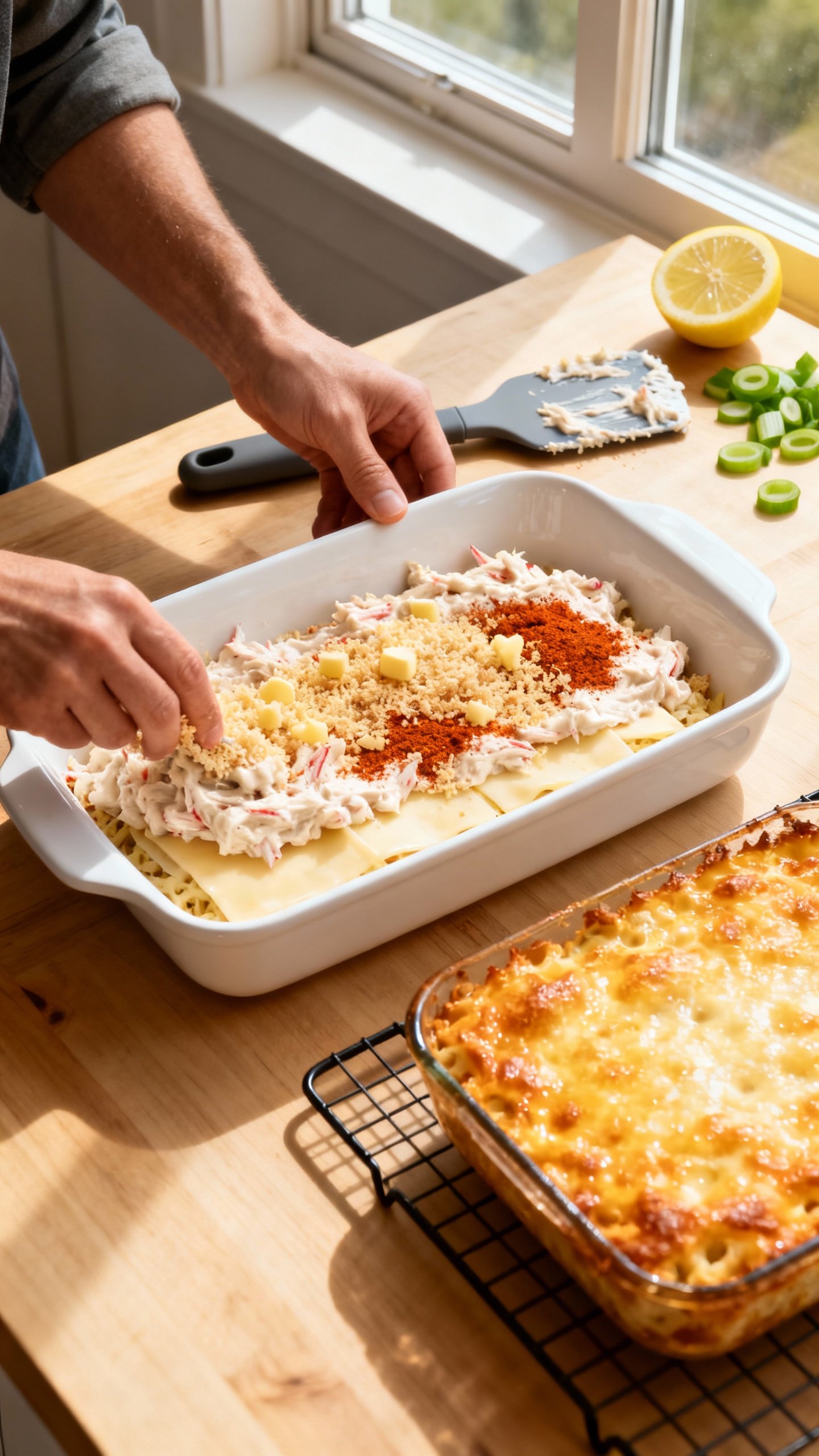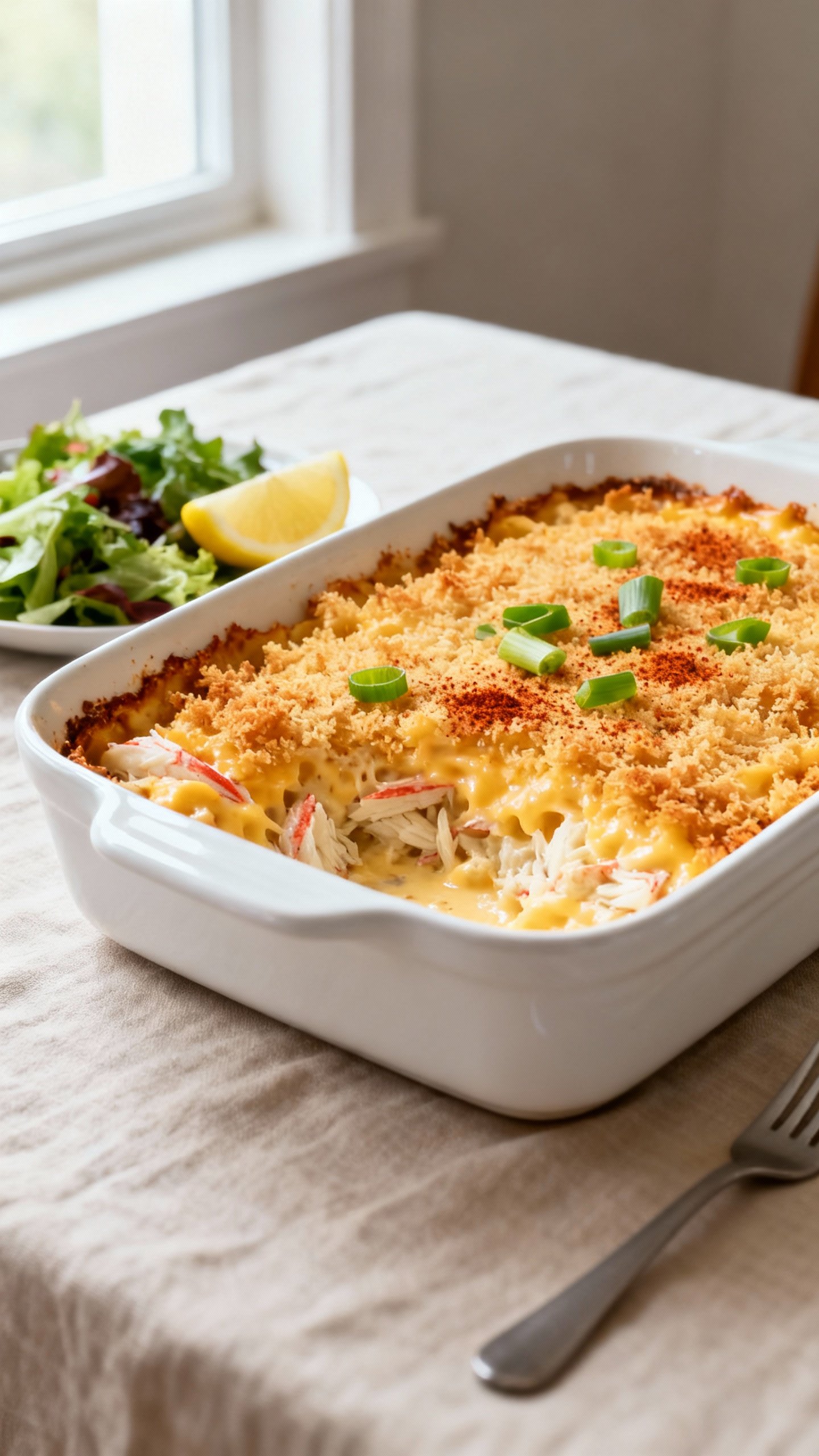 - Spicy jalapeño crab bake: Add 1–2 diced jalapeños, a teaspoon of hot sauce, and pepper jack cheese.