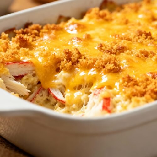 Looking for a cozy, crowd-pleasing bake that comes together fast and tastes like a creamy seafood hug? This Cheesy Imitation Crab Casserole Bake checks every box. It’s rich, bubbly, and loaded with tender imitation crab, sweet onions, and melty cheese. Think weeknight comfort with weekend flair.