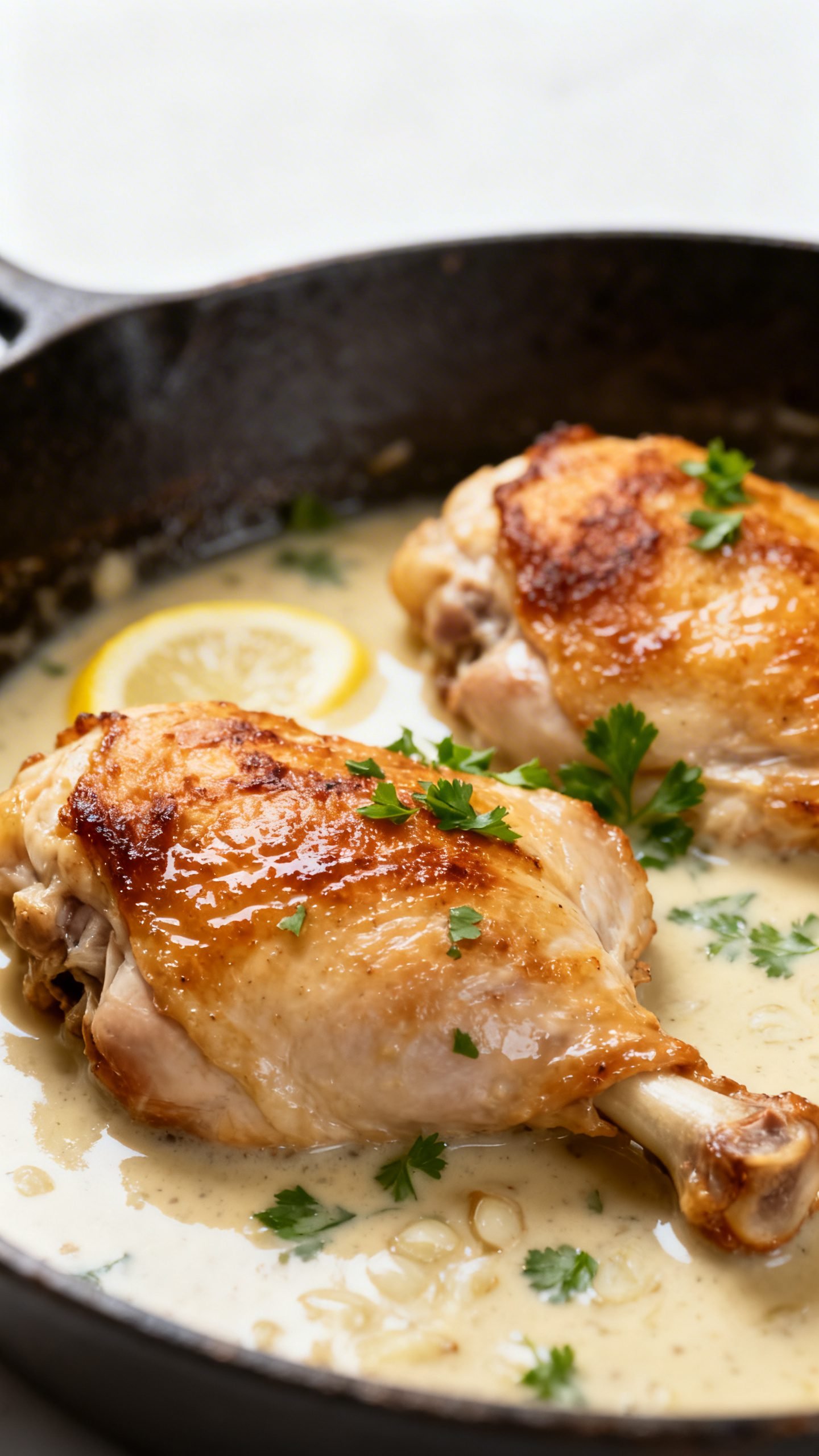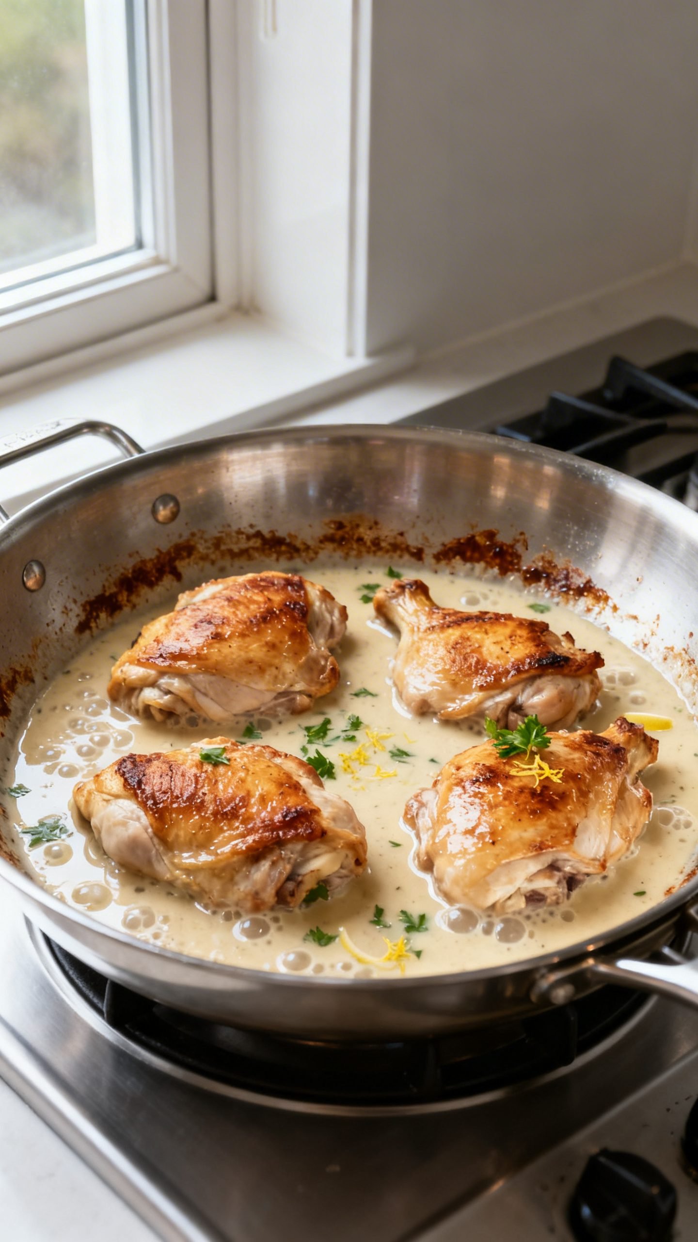Juicy, golden-browned chicken thighs simmer in a rich, garlicky cream sauce brightened with lemon and parsley. A fast, cozy one-pan dinner perfect with rice, potatoes, or noodles.