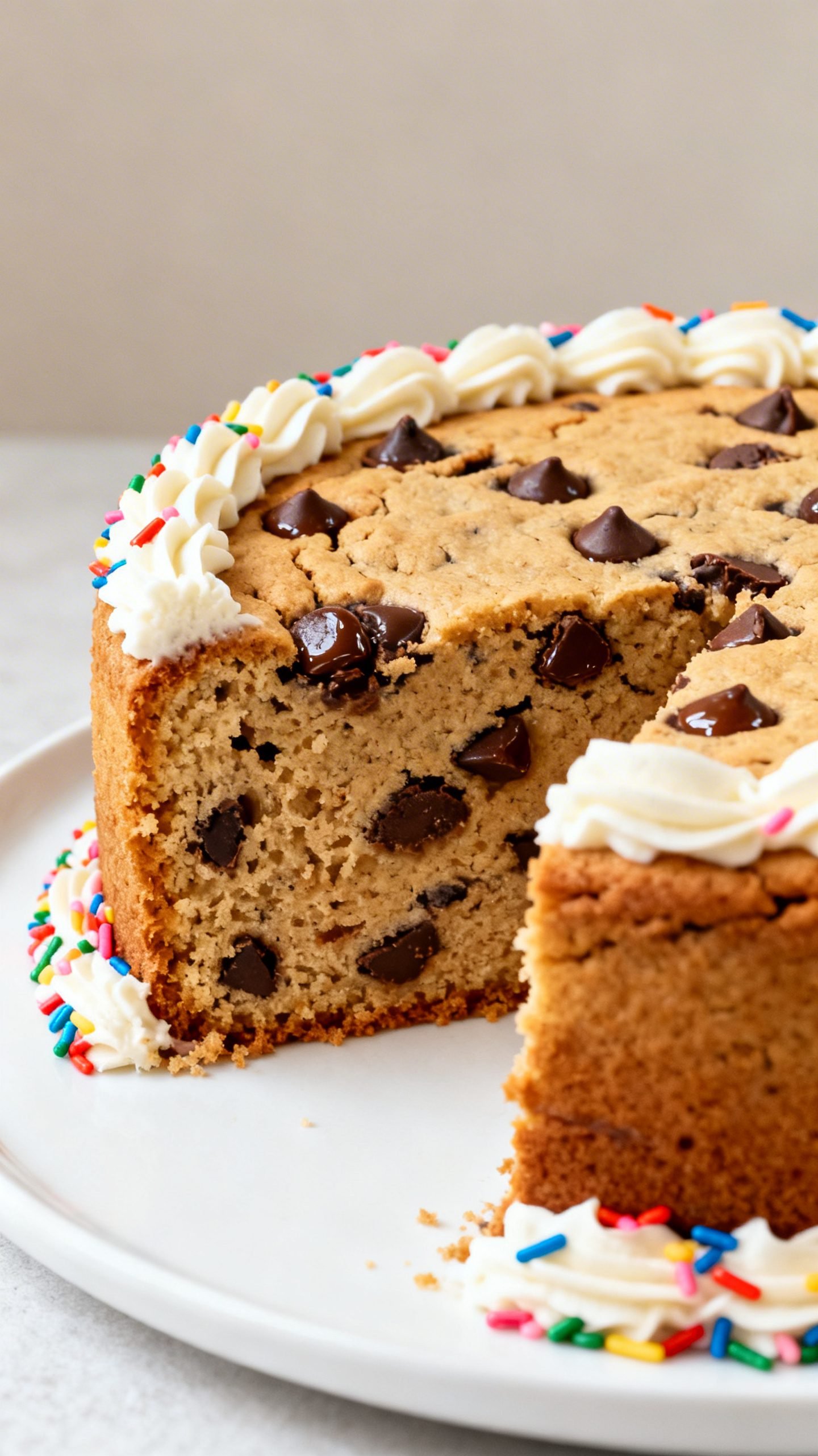 This chocolate chip cookie cake bakes in one pan with crisp edges and a soft, gooey center—perfect for quick celebrations. No chilling required and easy to decorate with simple buttercream and sprinkles.