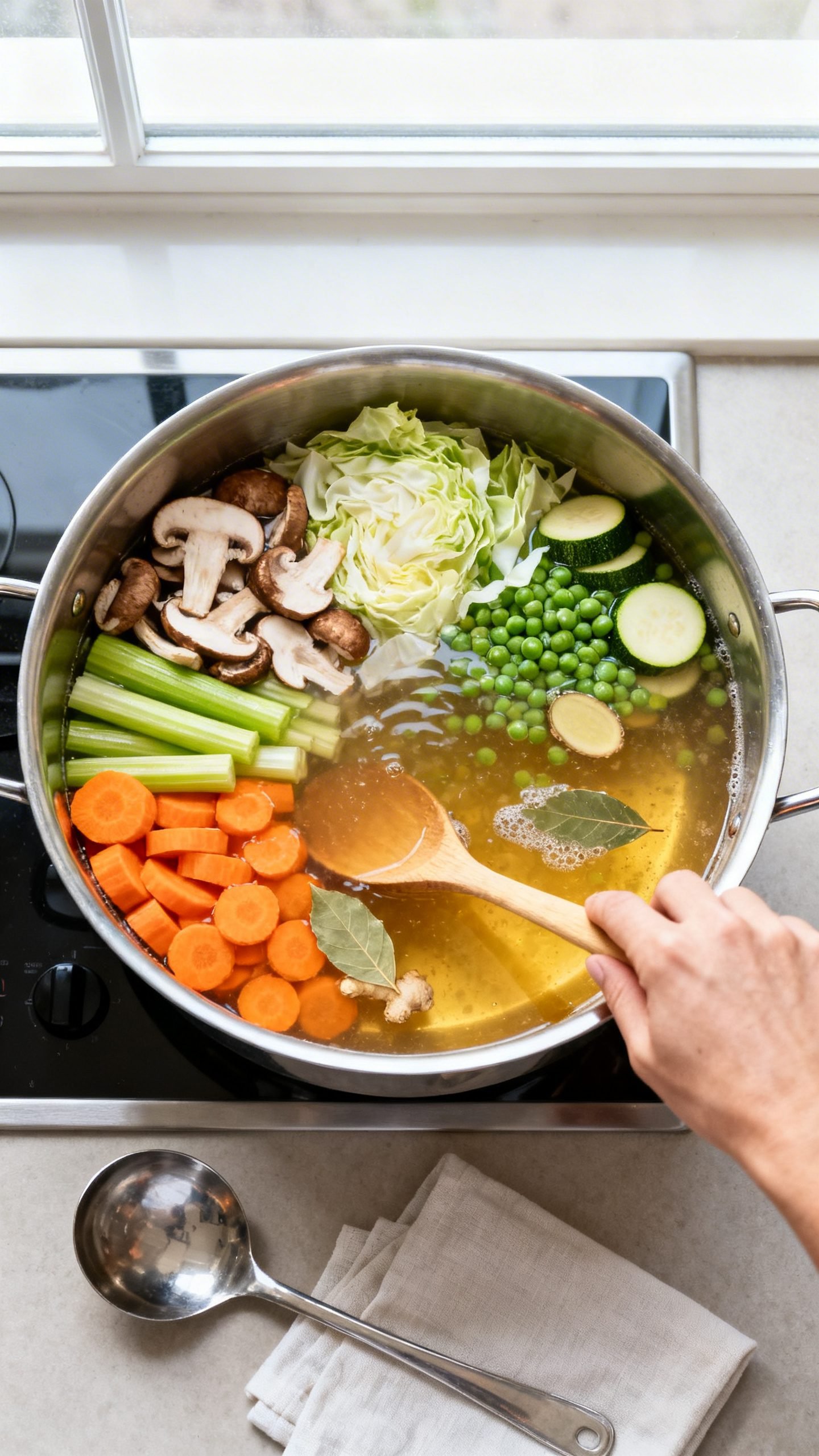 - Don’t boil aggressively: It clouds the broth and turns veggies mushy.