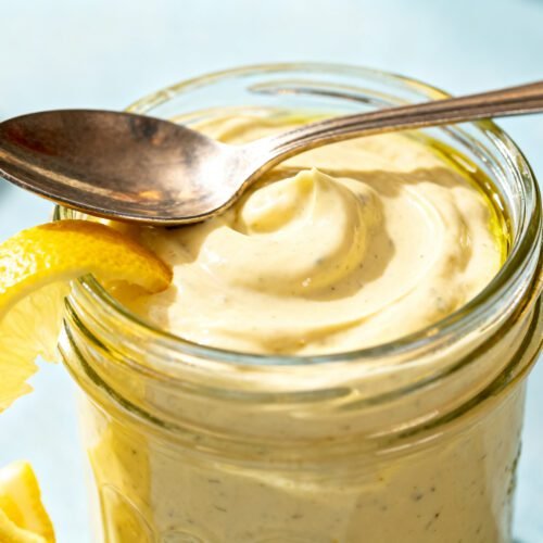 Rich, silky homemade olive oil mayonnaise with bright Mediterranean flavor that comes together in minutes. Easy to customize and foolproof with the right blending order and a mild EVOO.
