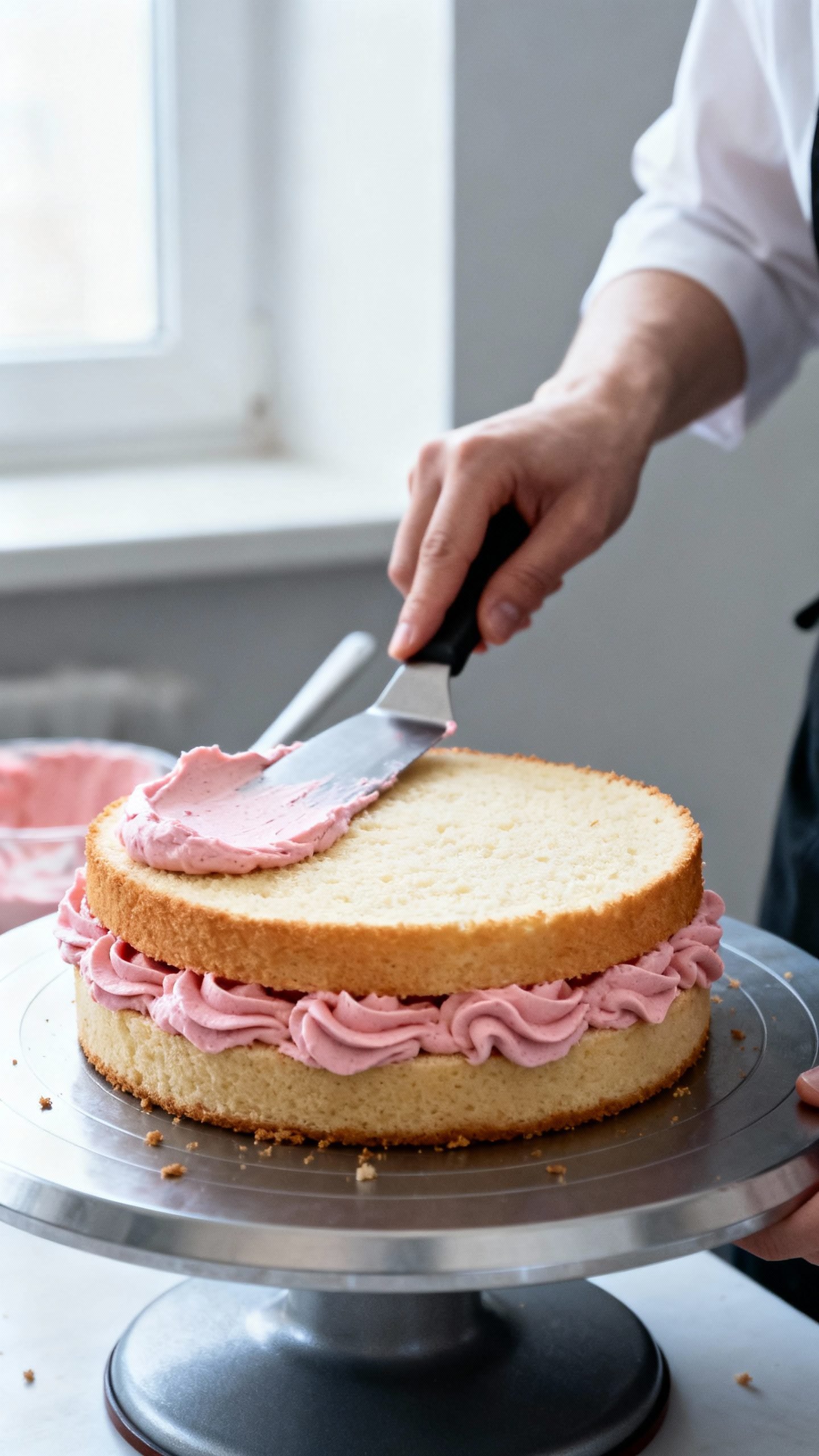 - Create a buttercream dam: Pipe a ring of buttercream around the cake edge to prevent bulging.