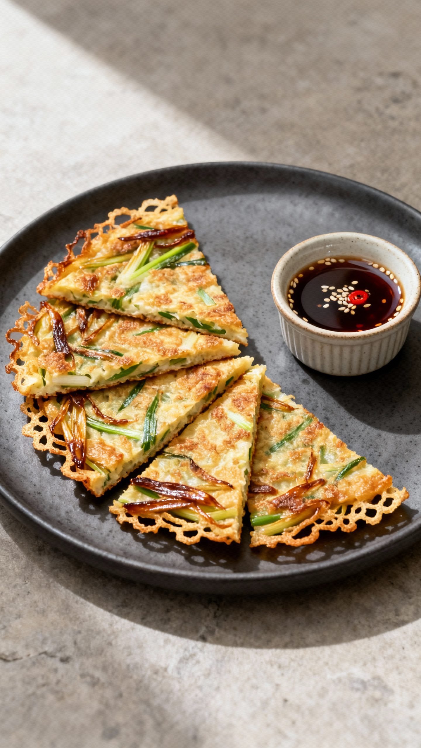 Pajeon proves that simple ingredients can taste extraordinary with the right technique. With a chilled, light batter, plenty of scallions, and a hot, well-oiled pan, you’ll get a pancake that crackles at the edges and stays tender inside. Mix the dipping sauce, slice into wedges, and enjoy a plate of pure comfort that lands on the table in under 30 minutes.
