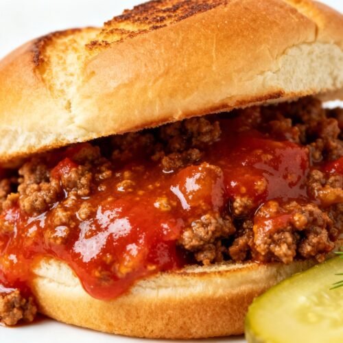 - Spoon the sloppy joe mixture onto toasted buns and top with pickles, cheese, or coleslaw if desired.