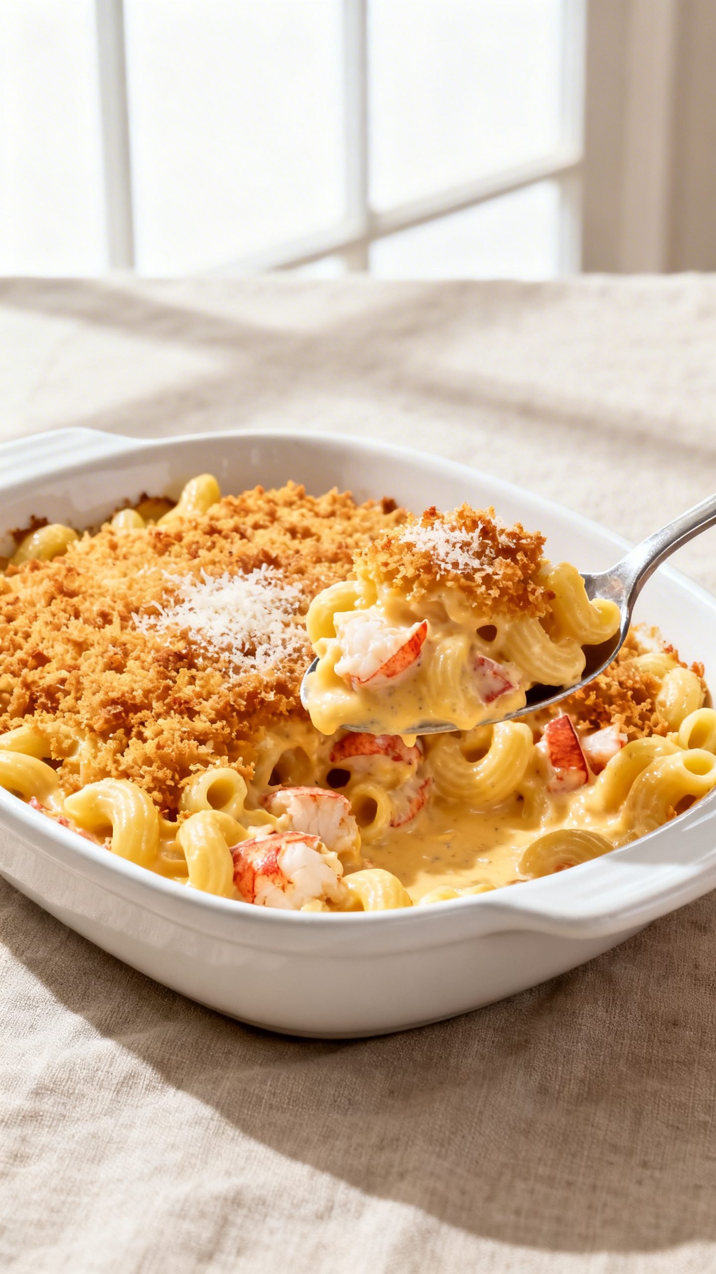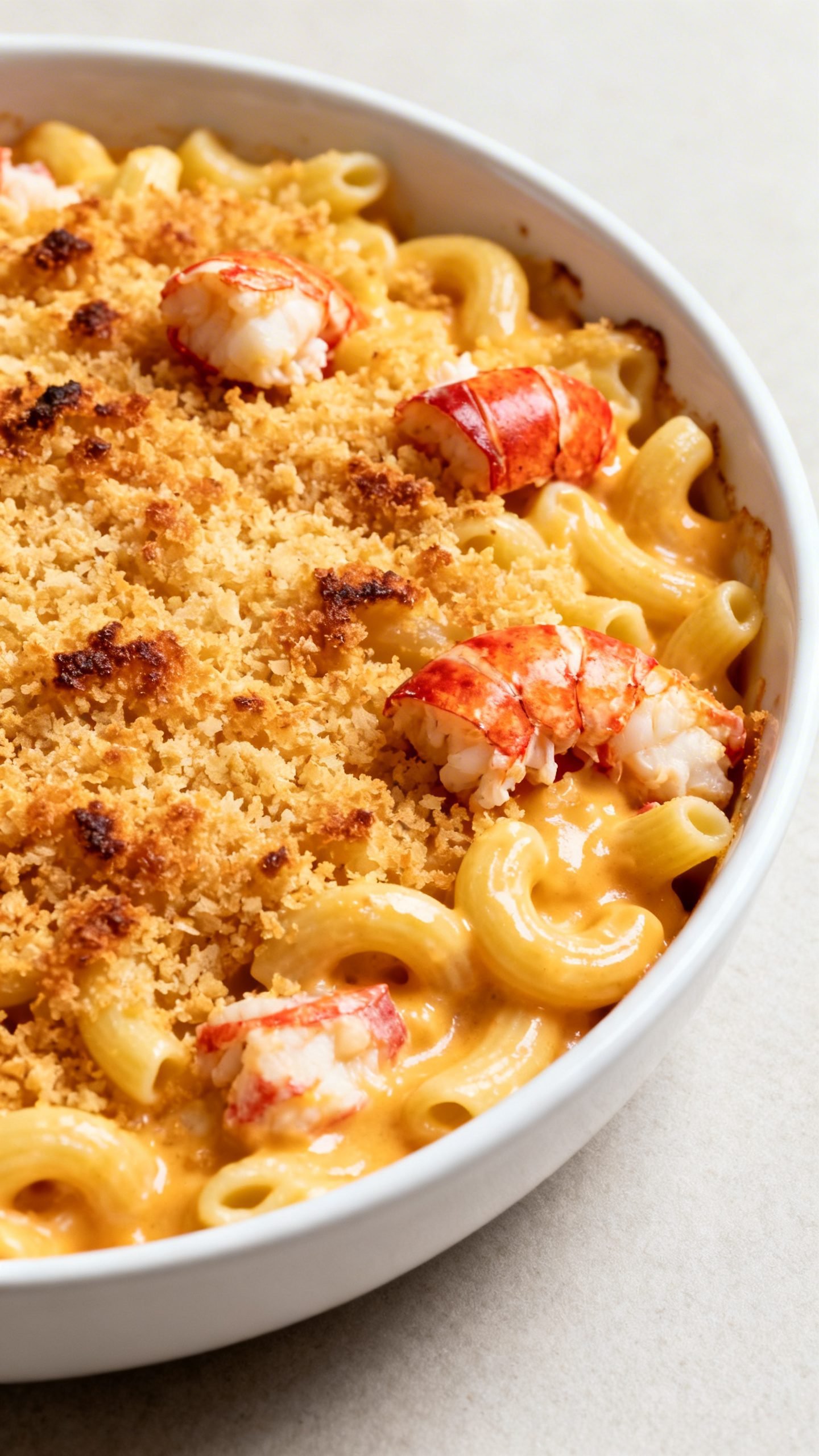 Yes. Serve it stovetop-style. Warm the lobster separately, fold into the sauced pasta, and top with toasted panko made in a skillet.