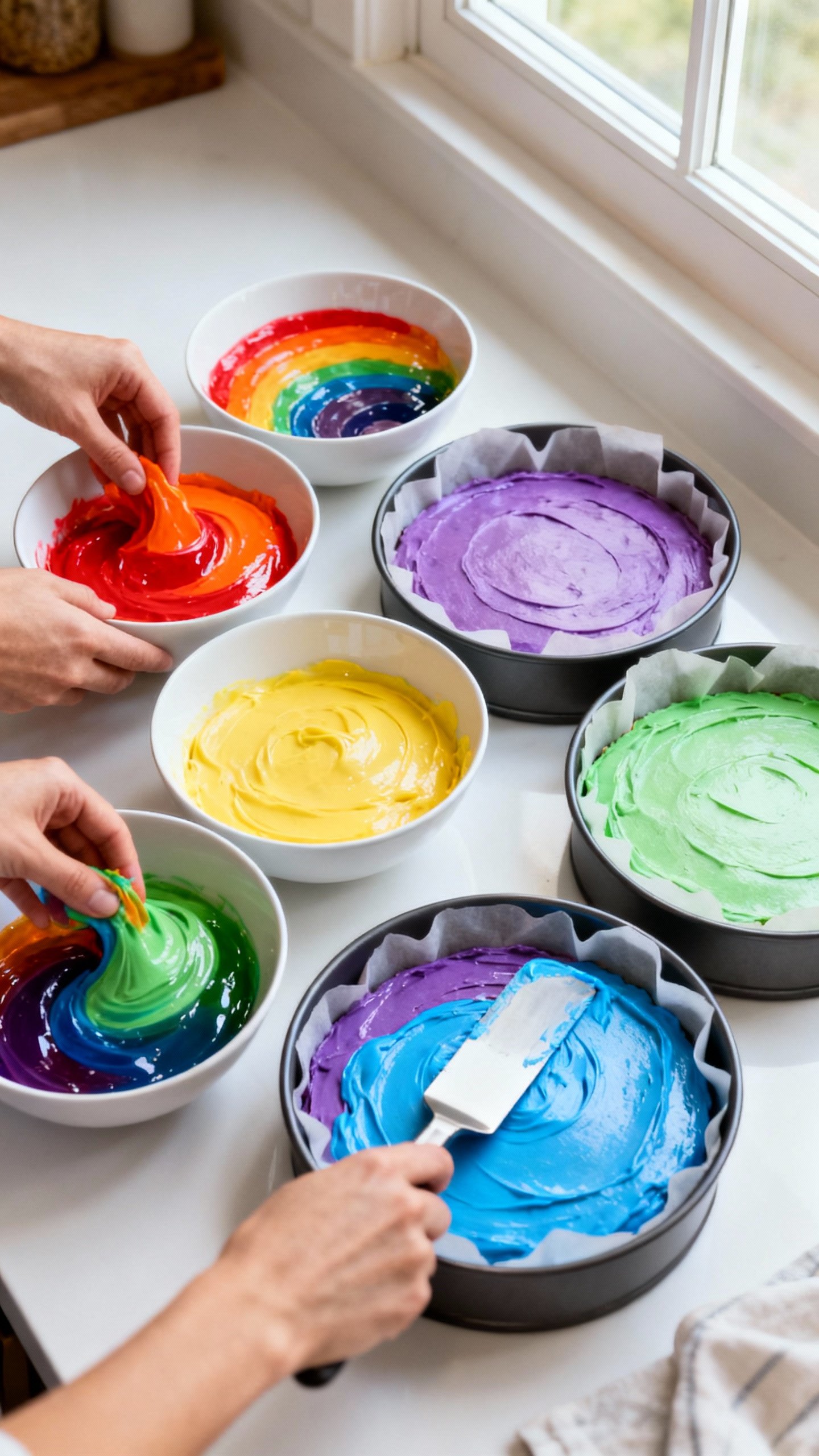 - Single-pan method: If you have one pan, bake layers one at a time, re-lining the pan each time. Keep colored batters covered so they don’t dry out.