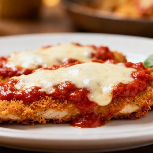 I keep the familiar golden crust and melty cheese, then lighten things up with baked cutlets, minimal oil, and a quick, vibrant marinara. The result tastes classic, feels clean, and delivers that fork-and-knife comfort you want from a proper chicken parm.
