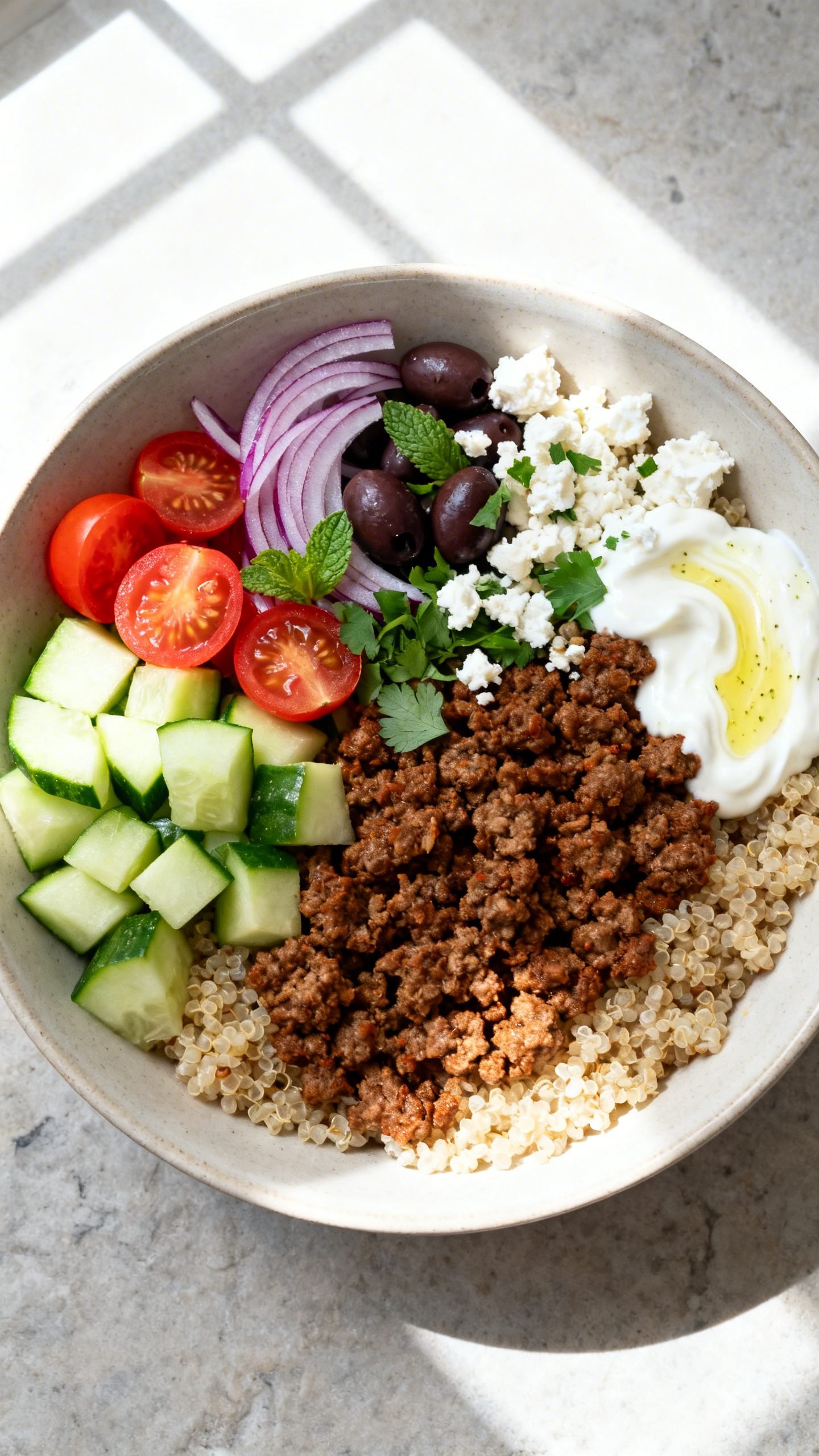 Healthy Mediterranean Ground Beef Bowl Recipe | Easy Protein Meal
