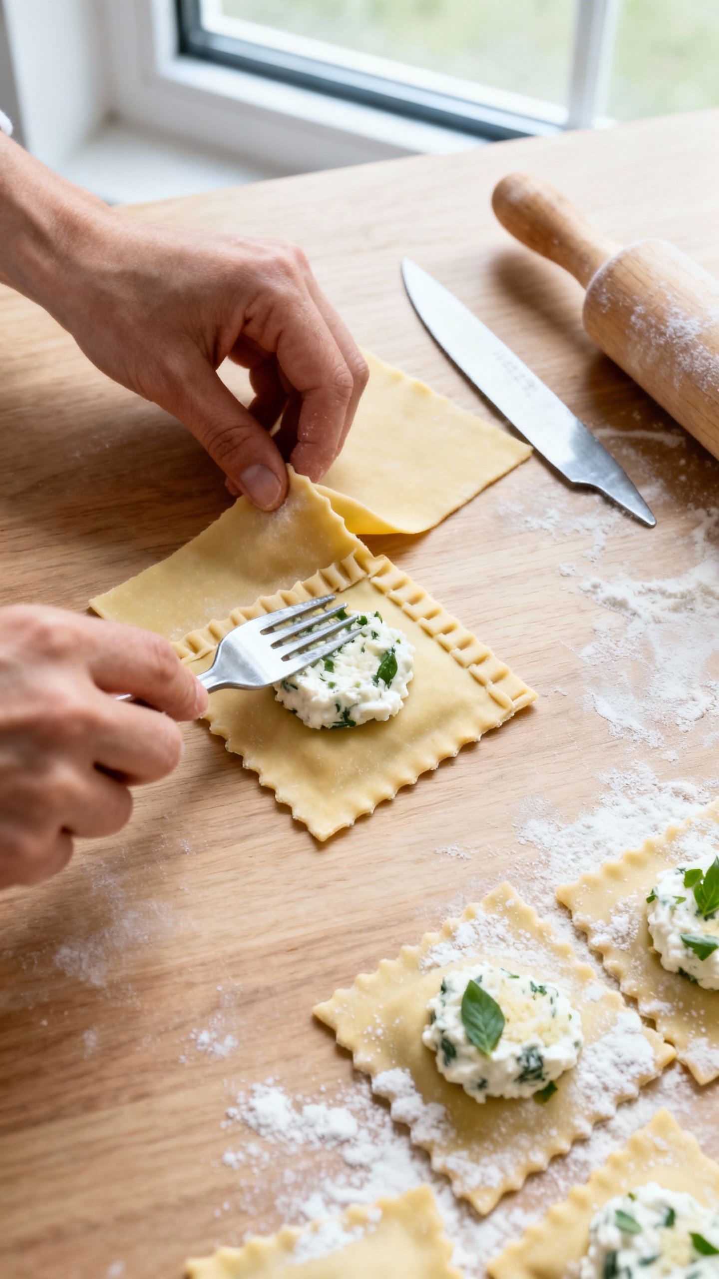 - Don’t overfill: A teaspoon per raviolo keeps edges clean for a strong seal.