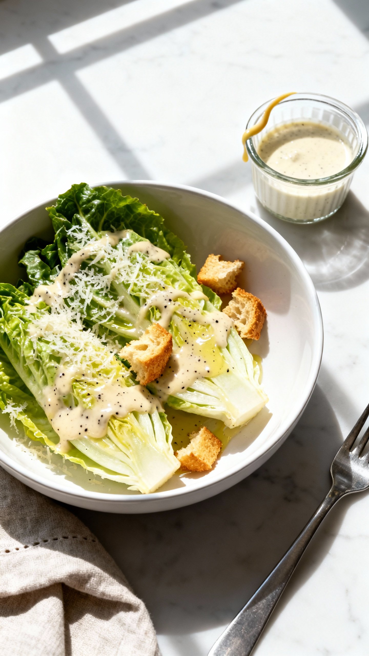 - Greek yogurt Caesar: Swap half the oil for 1/4 cup plain Greek yogurt for a lighter, tangy texture.