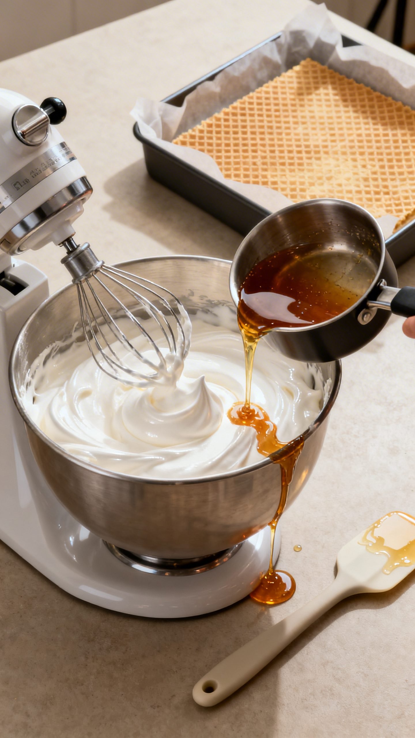 - Stable meringue foundation: Whipped egg whites create structure, and hot syrup locks it in for a glossy, sliceable slab.