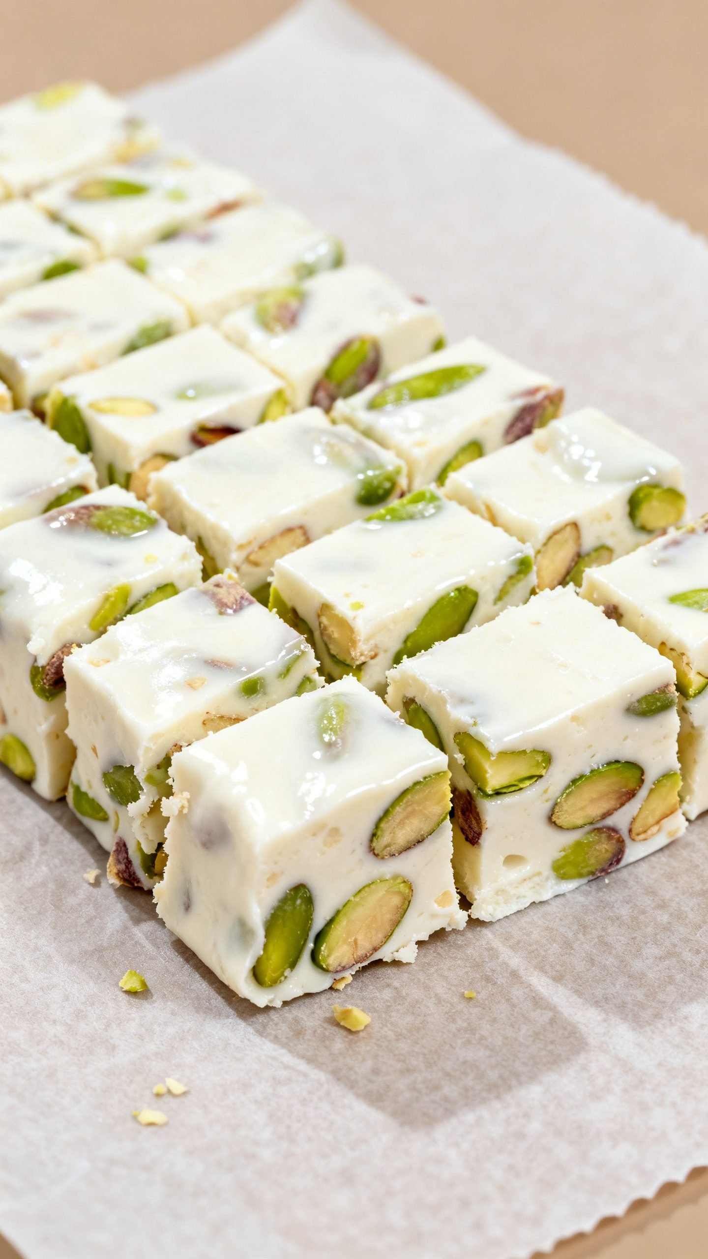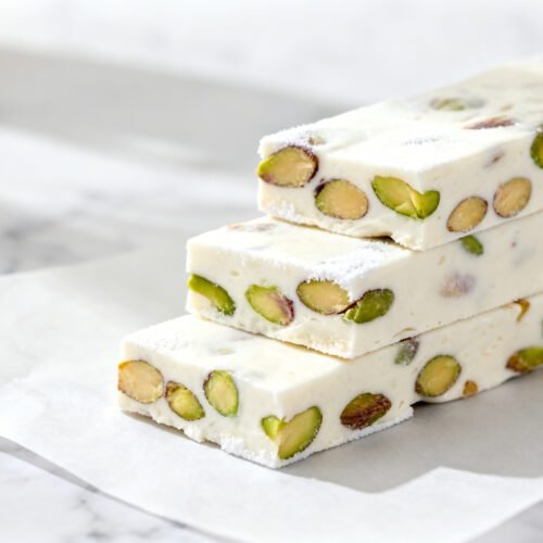 I tested this recipe until it clocked consistent results. You’ll cook a honey-sugar syrup, whip egg whites until glossy, then marry the two with butter and vanilla. Add piles of roasted pistachios and press into a pan. Slice once it sets, and you’ve got candy-shop results that hold their shape yet stay tender. Ready to make a batch for gifting—or hoarding?