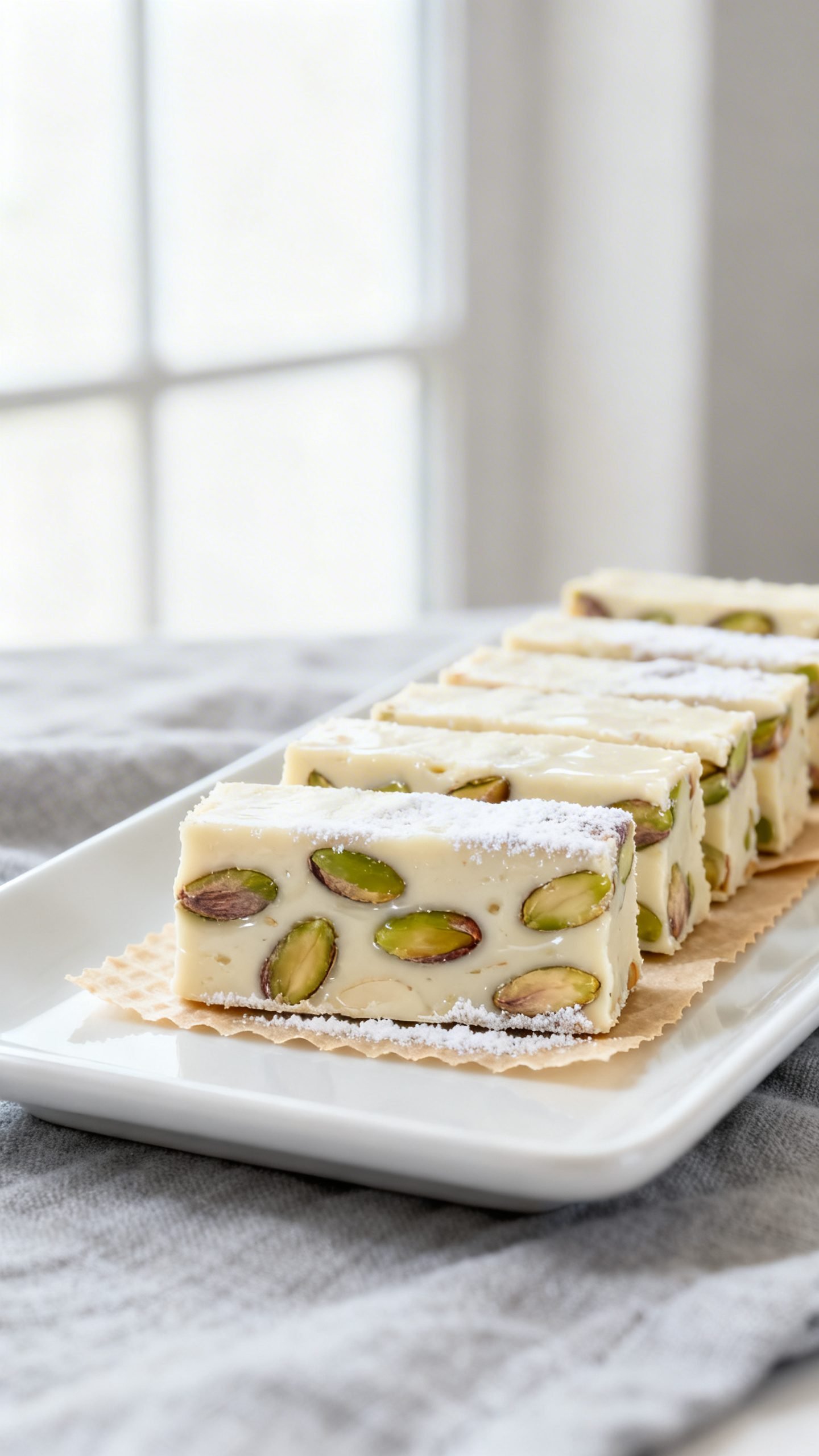 - Salted pistachio nougat: Sprinkle flaky sea salt on top before it sets for sweet-salty contrast.
