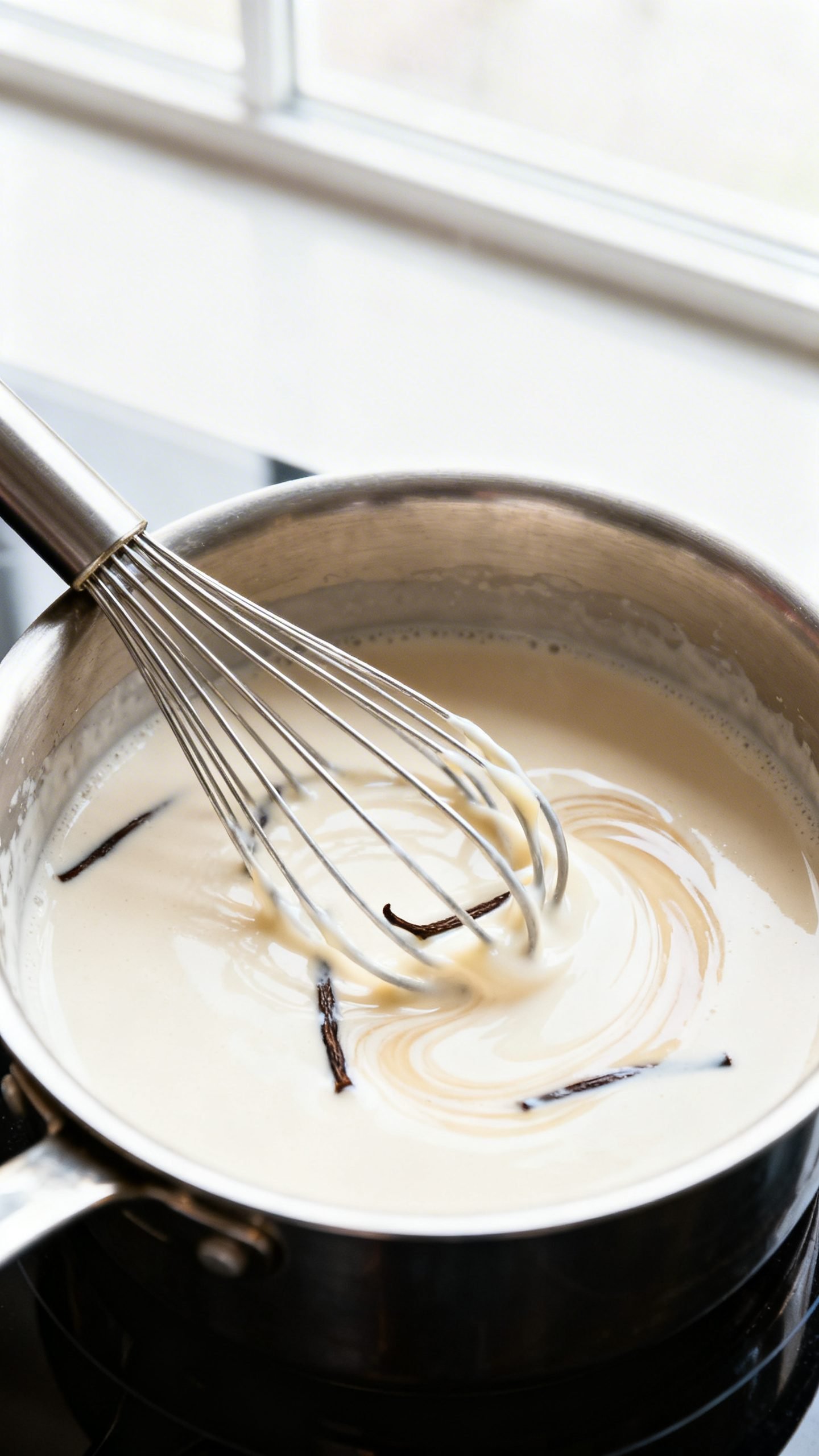 • Don’t boil: High heat can split dairy and mute vanilla.