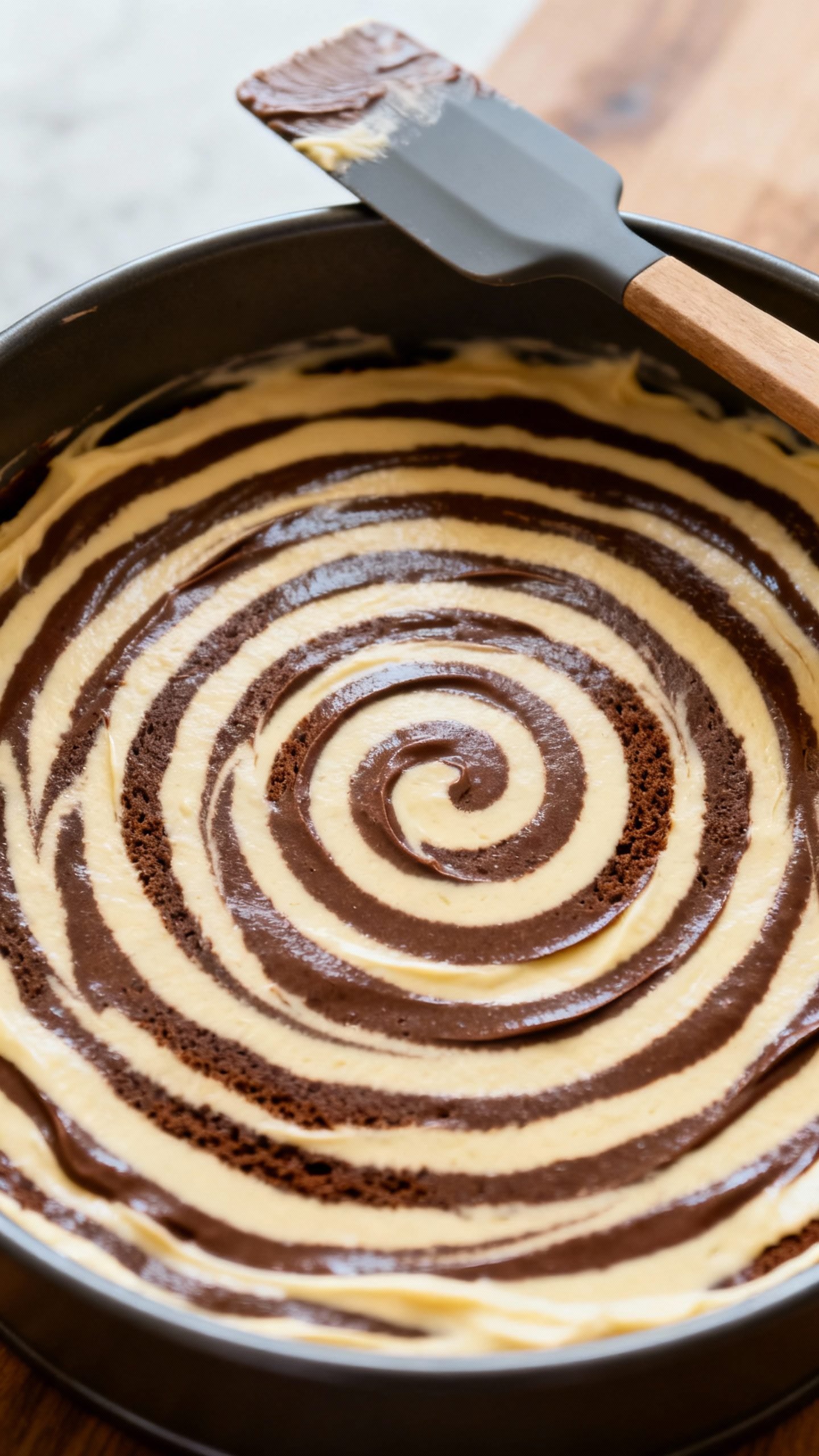 - Divide the Batter: Evenly divide the vanilla batter between two bowls. Pour the prepared cocoa paste into one of the bowls and fold it in until you have a smooth, uniformly chocolate batter.