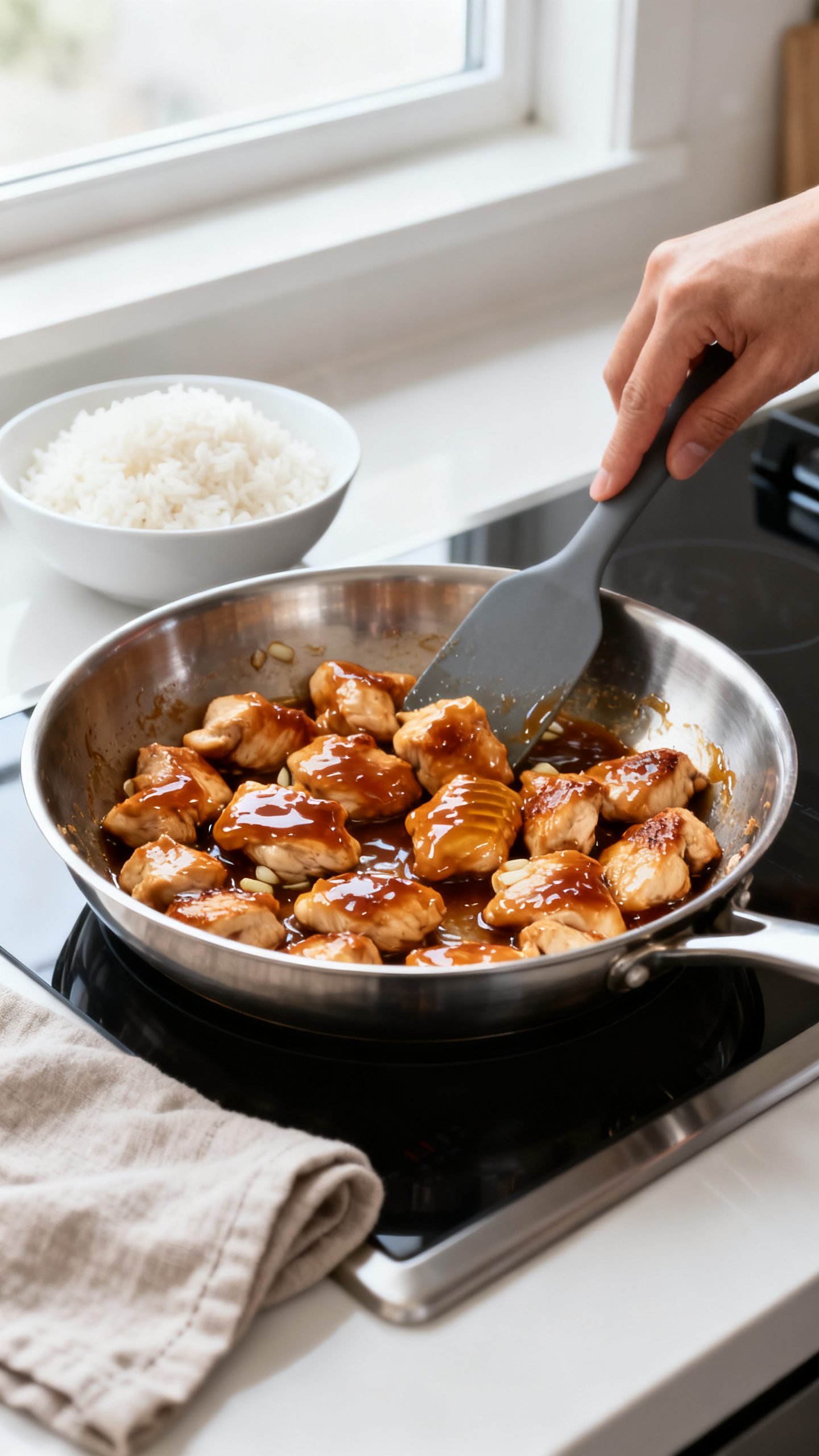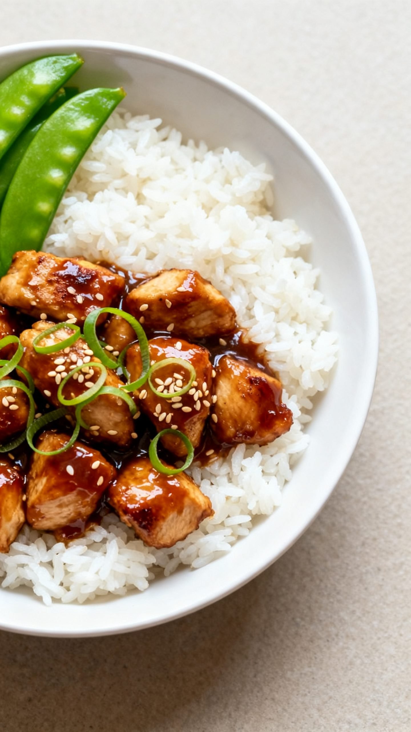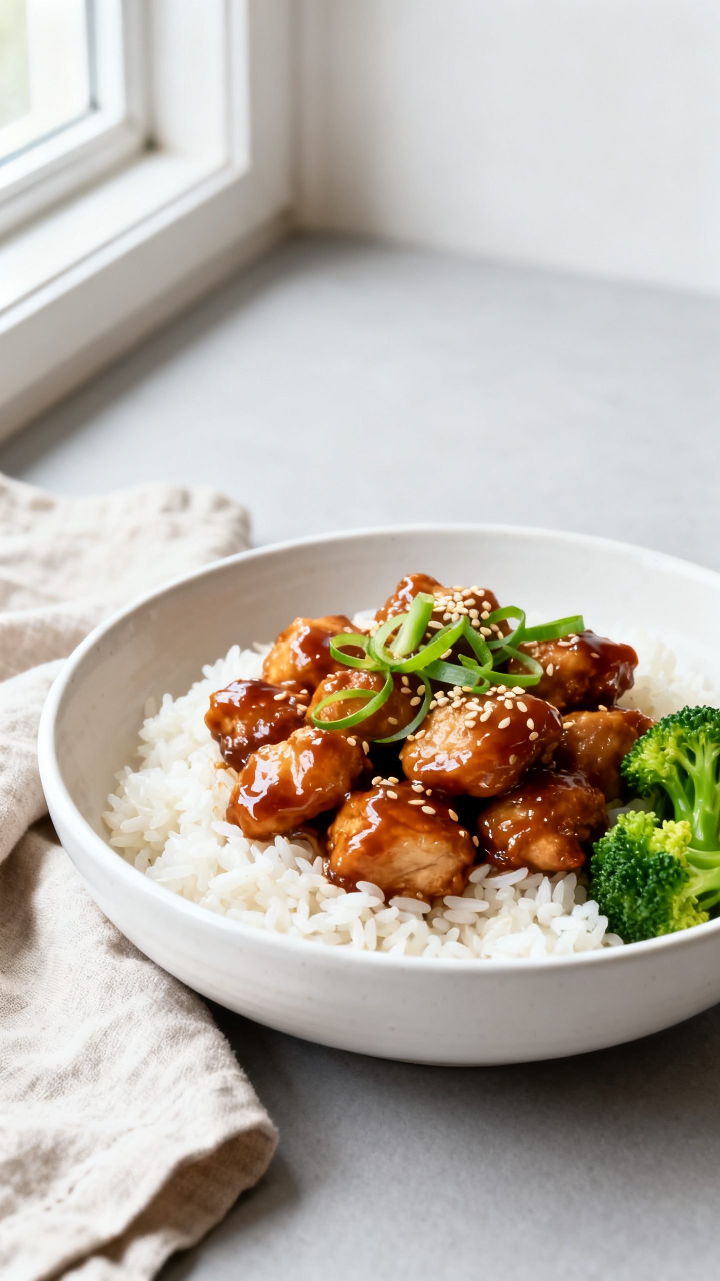 - Serve the chicken and sauce over warm rice, then garnish with sliced green onions and sesame seeds; add steamed broccoli or snap peas on the side.