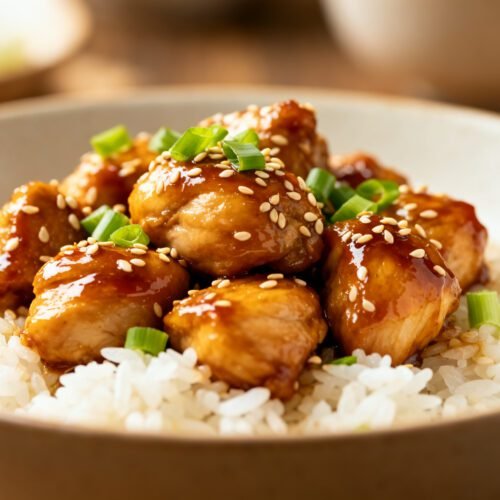 - Crispy chicken bites: Use an extra tablespoon of cornstarch and air-fry chicken at 400°F for 10–12 minutes, tossing in sauce after.