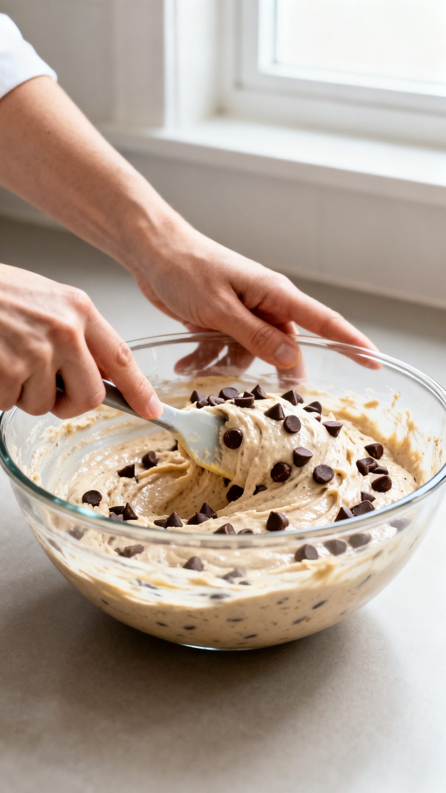 • Fold in the chocolate chips a few times to distribute evenly.