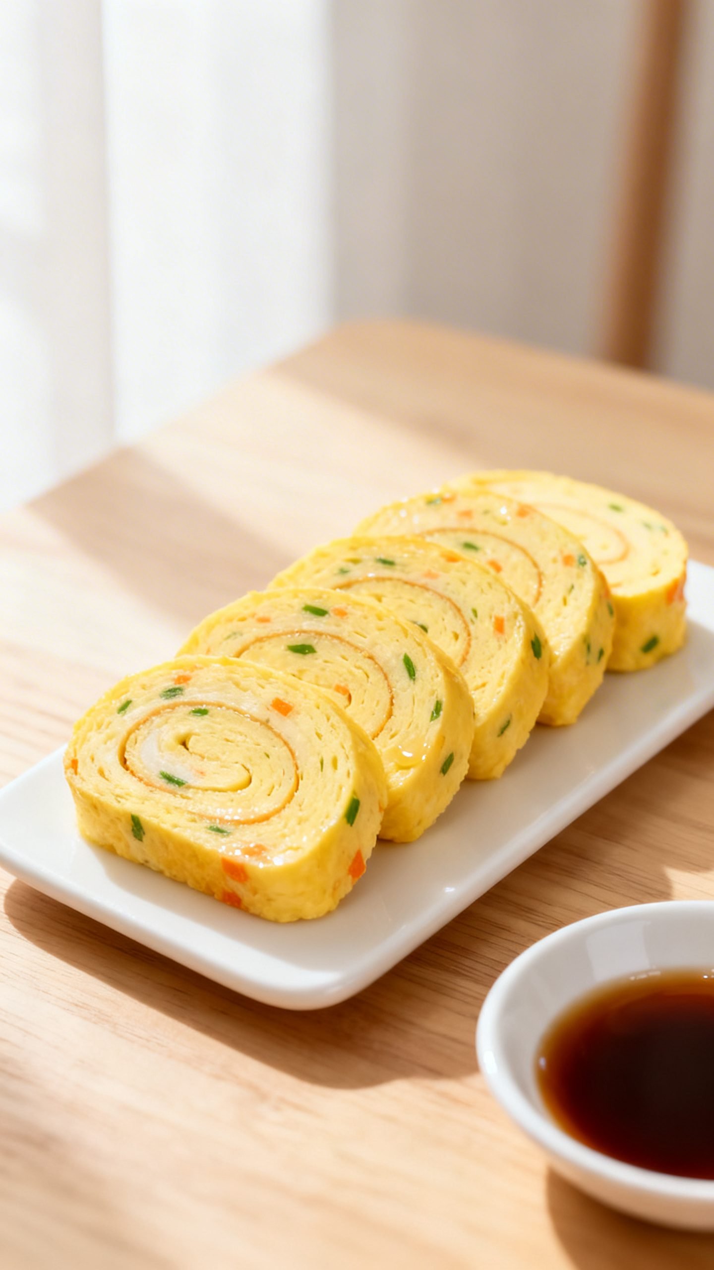 Tool note: A small nonstick skillet (8–9 inches) or a rectangular tamagoyaki pan makes rolling simple. Use a flexible spatula or chopsticks.