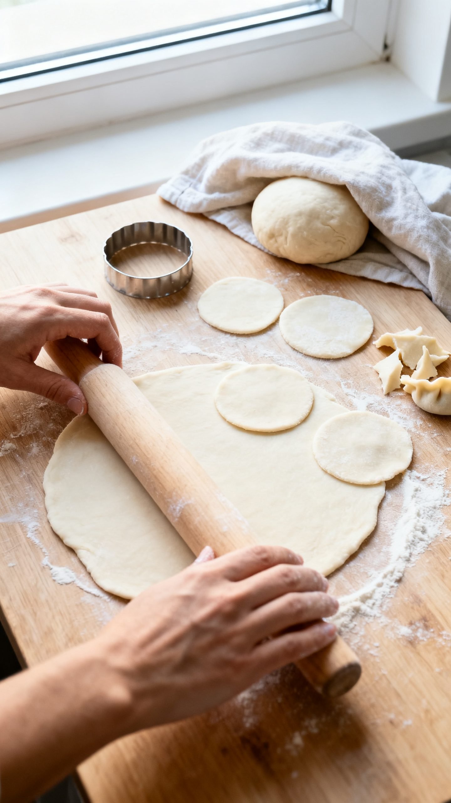 • Don’t re-roll scraps repeatedly: Overworked dough turns tough. Re-roll once and make mini pierogi with the rest.