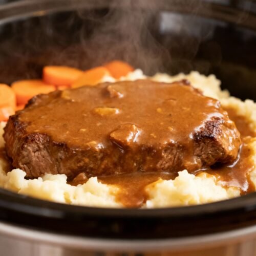 I make this on busy weeknights when I want real flavor without babysitting a skillet. You toss everything in the slow cooker, set it, and dinner practically makes itself. The best part? It’s affordable, family-friendly, and drenches everything in silky gravy. Let’s get cooking.