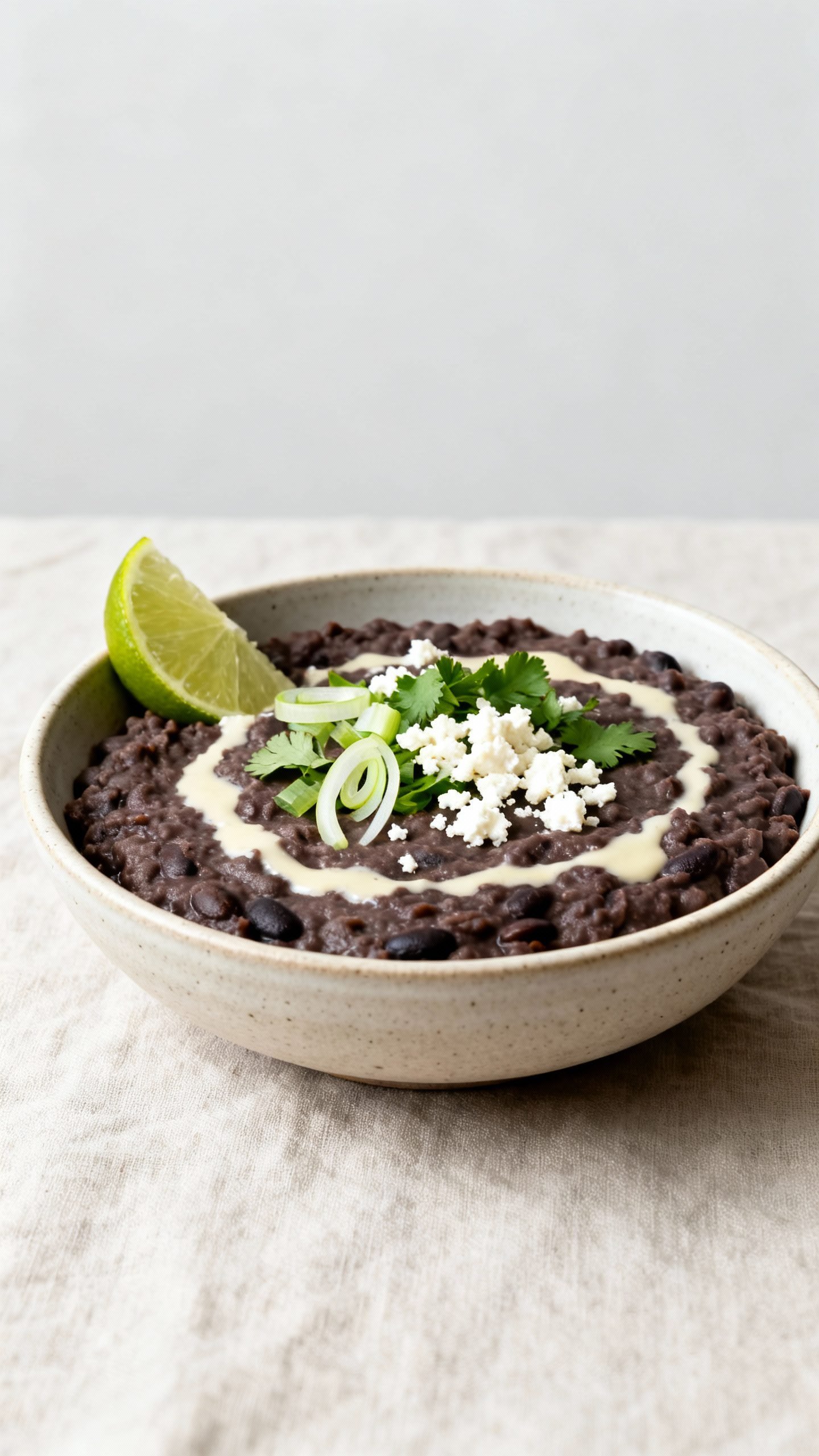 Creamy, savory refried black beans made on the stovetop with aromatics, warm spices, and a squeeze of lime. Perfect as a quick side or spread for tacos, burritos, bowls, and breakfast.