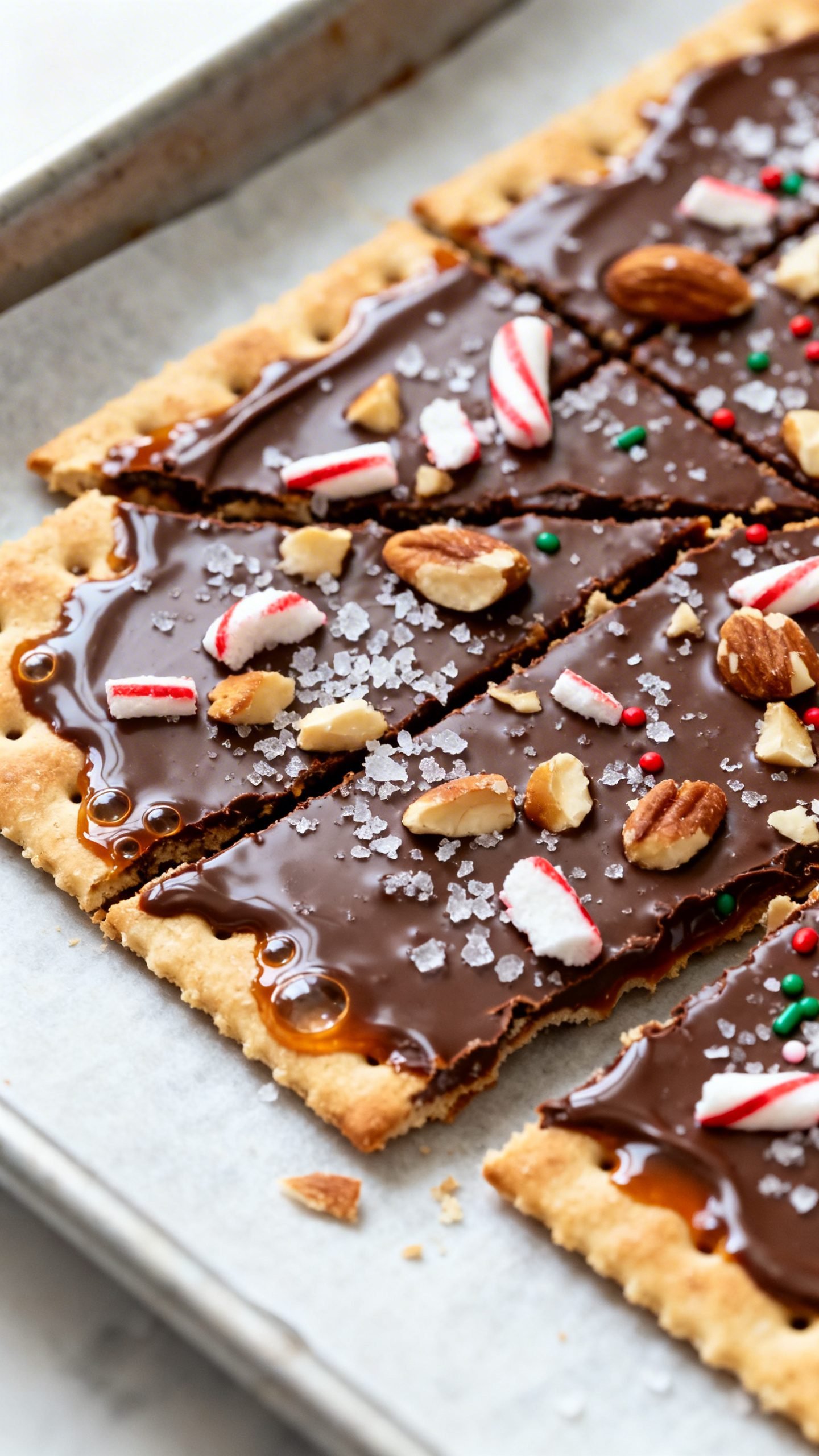 This easy saltine cracker toffee combines a crisp buttery toffee base, melted chocolate, and festive toppings for a quick holiday candy. It’s made on a sheet pan and breaks into giftable shards without special tools.