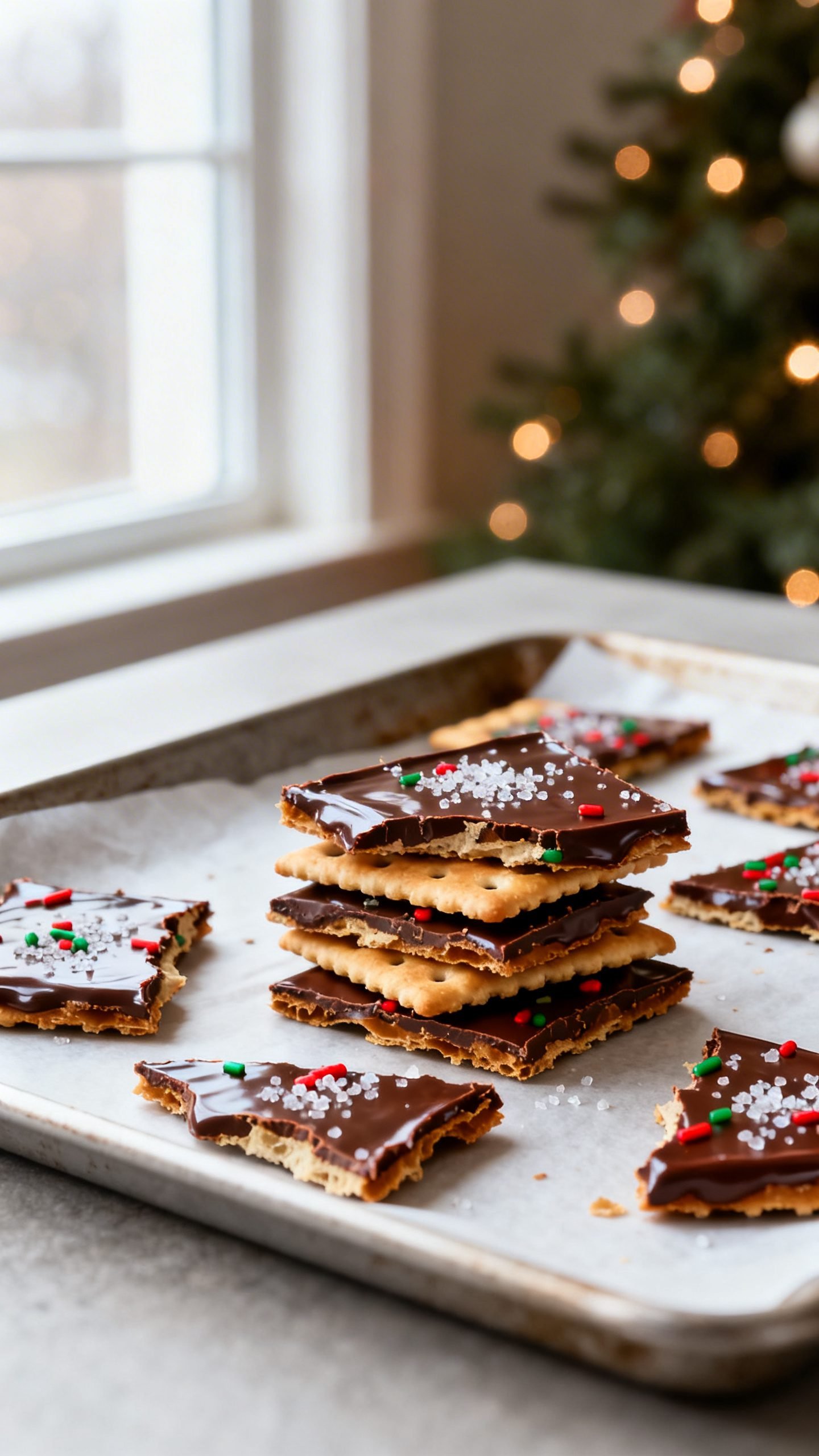 If you need a quick, crowd-pleasing holiday treat, this saltine cracker toffee checks every box. It’s buttery, crisp, chocolatey, and sprinkled with festive toppings. You make it on a sheet pan, break it into shards, and watch it disappear at parties and cookie exchanges.