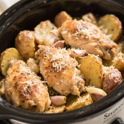 Slow Cooker Parmesan Garlic Chicken and Potatoes – Comforting, Easy, and Flavor-Packed