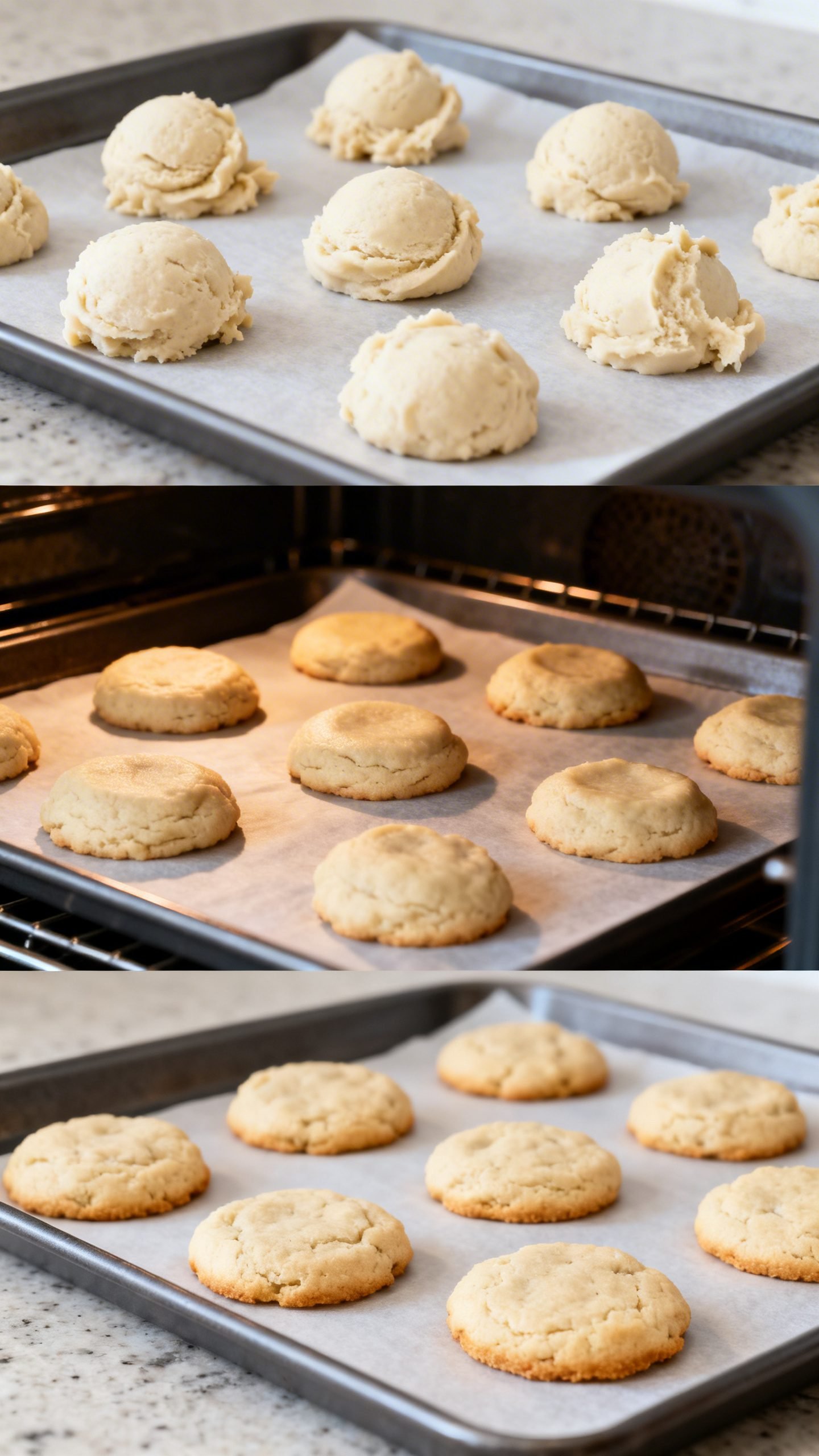 - Scoop and shape: Use a medium scoop to portion dough onto prepared sheets, spacing 2 inches apart. Lightly dampen fingertips and gently mound the tops for thicker centers.