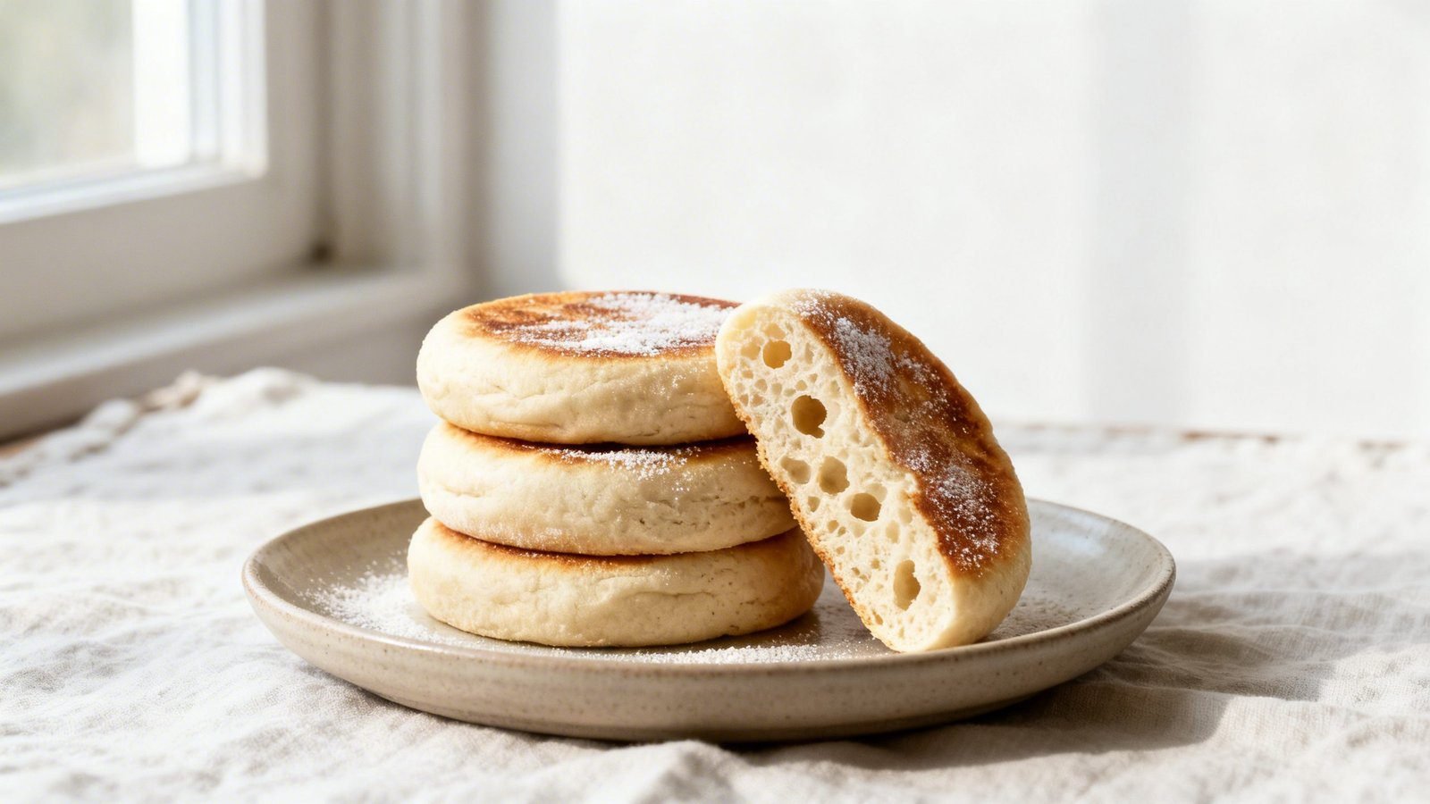 - Cook: Preheat a heavy skillet or griddle over low to medium-low for 10 minutes. Cook muffins dry (no oil) 6–8 minutes per side until deep golden and set; adjust heat to avoid over-browning. For thicker muffins, finish in a 325°F (165°C) oven for 5–7 minutes.