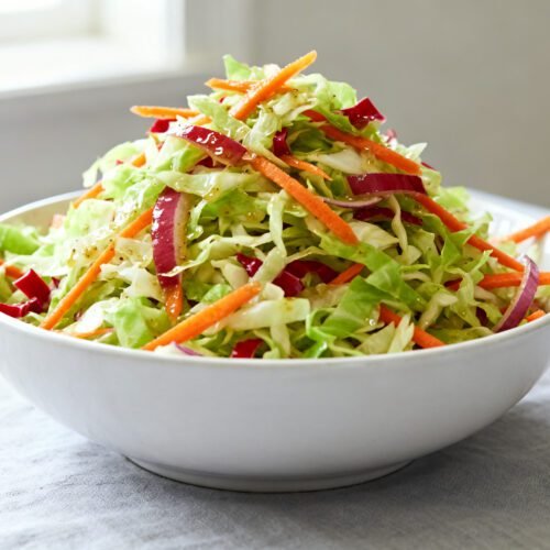 Unlike creamy slaws, this version skips the mayo and leans on a clean, zippy vinaigrette that lets the cabbage shine. It comes together fast, holds up well, and tastes even better after a short chill. You’ll want to keep a bowl in the fridge all week.