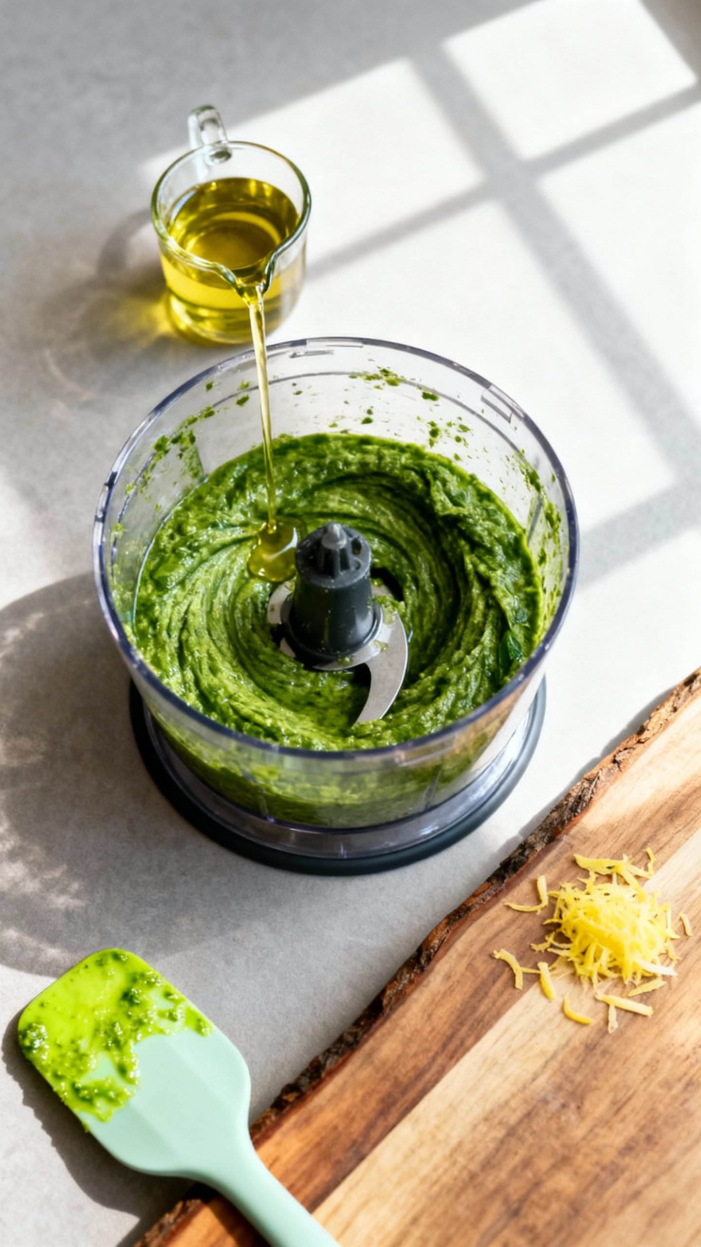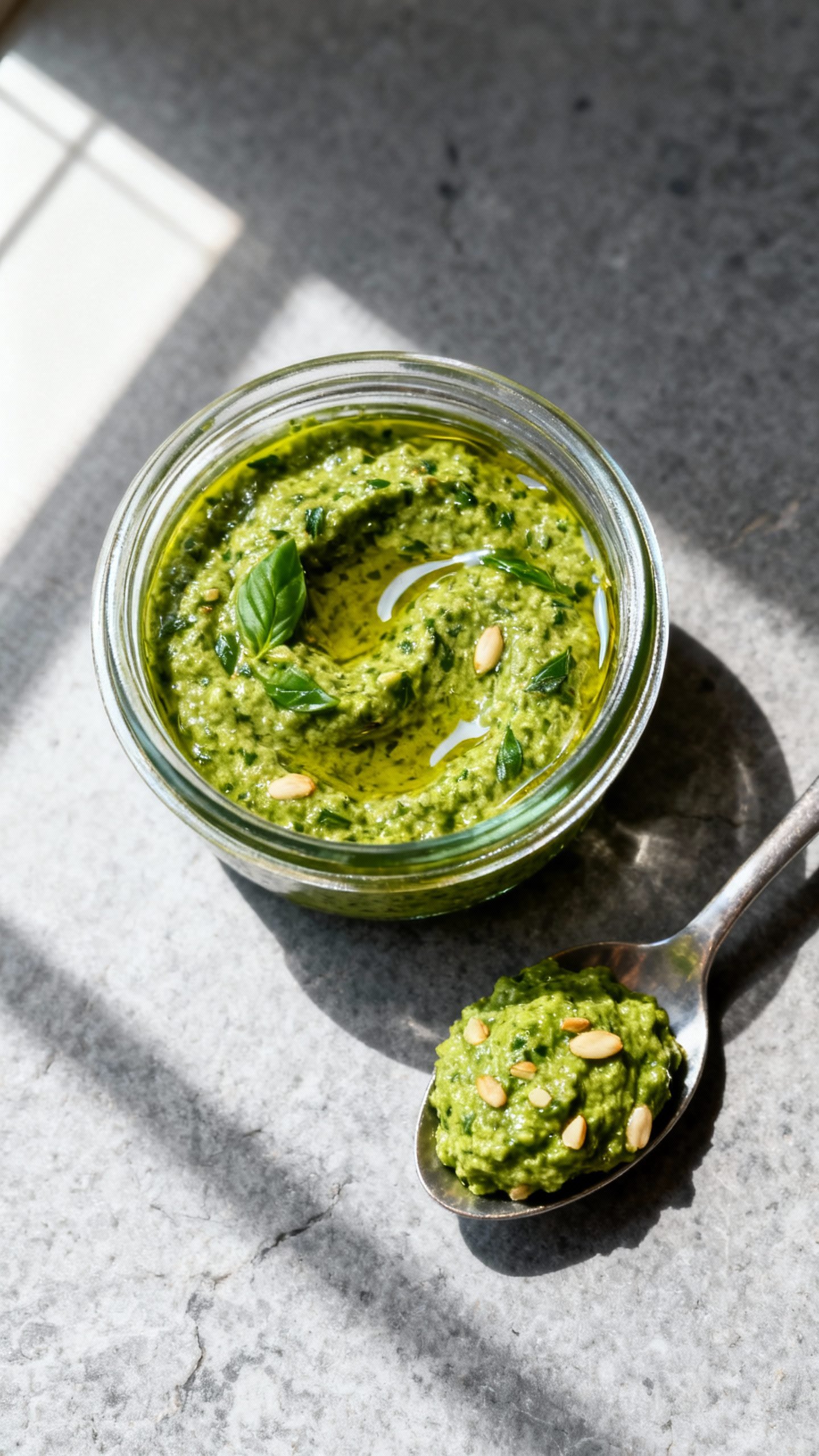 Texture tip: For extra-smooth pesto, blend slightly longer and add 1–2 tablespoons more oil. For rustic pesto, pulse briefly and keep it chunky.