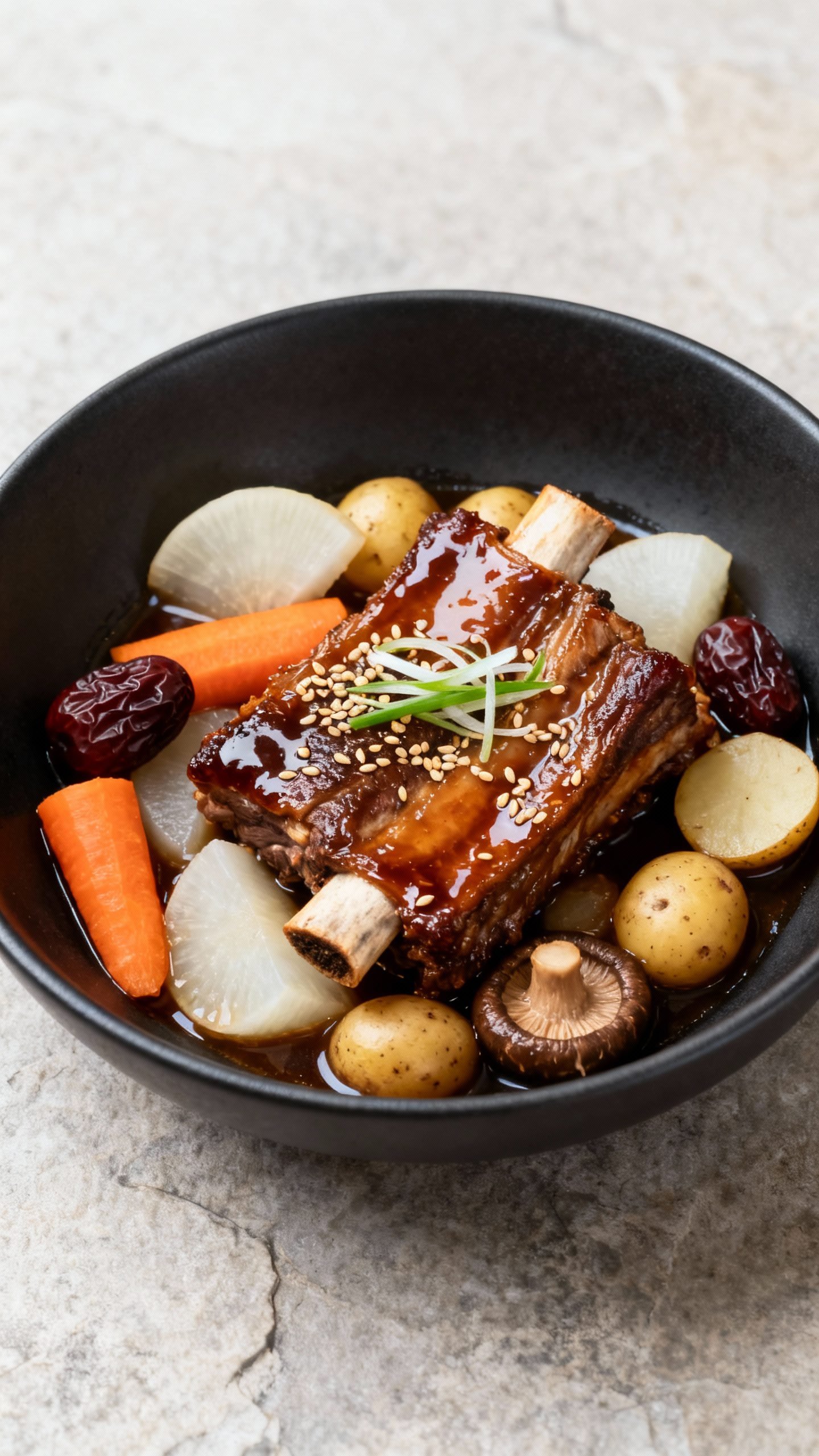 - Add potatoes and jujubes: Cook another 20–25 minutes, until ribs turn fork-tender and vegetables feel soft but intact.