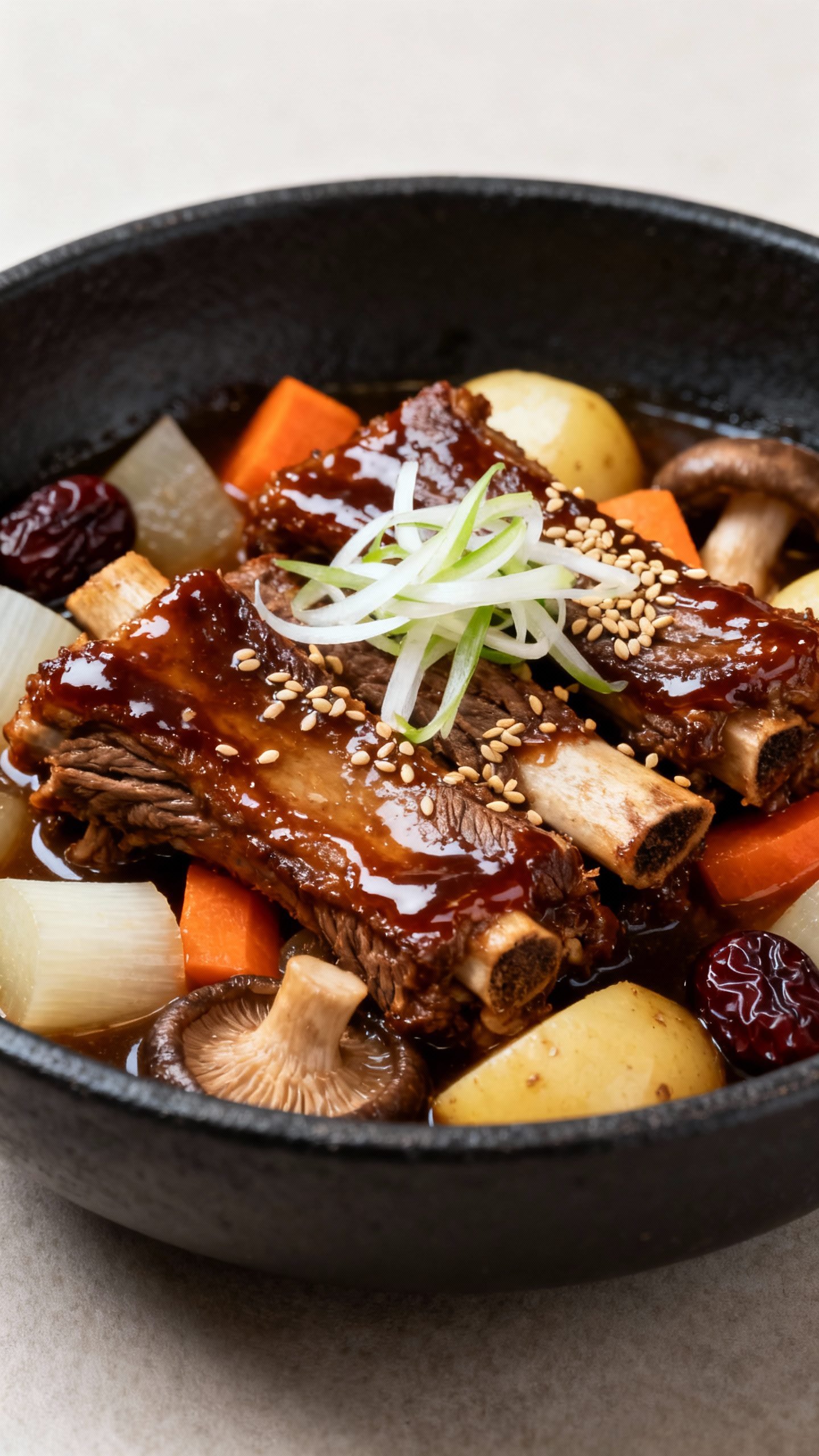 Traditional Galbi Jjim leans mild. Add gochugaru or gochujang to bring gentle heat without overpowering the sweetness.