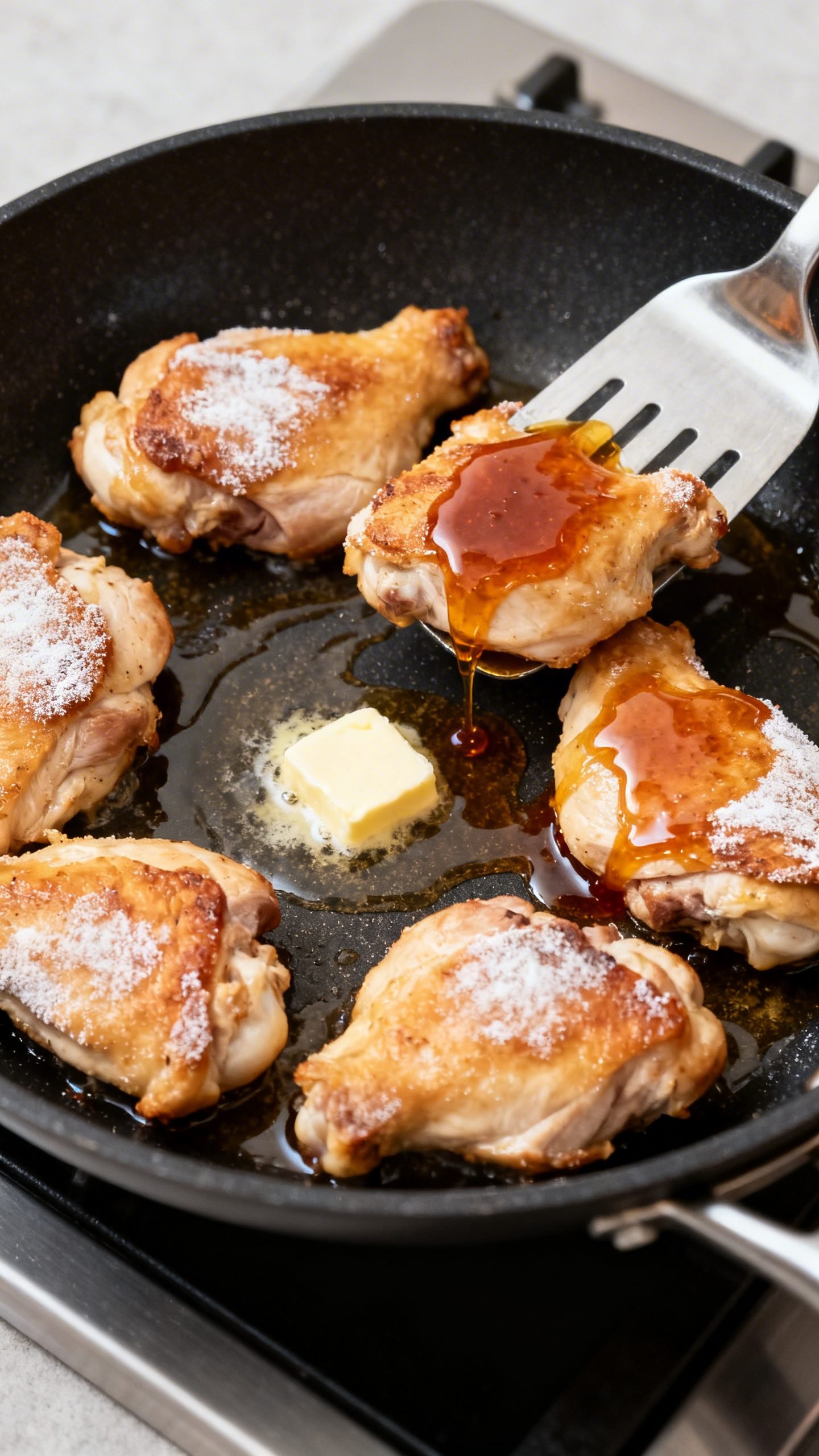 - Glaze and toss: Return all chicken to the skillet over low heat. Pour in the warm hot honey. Toss until every piece shines and the sauce clings, about 1 minute. Squeeze a little lemon or lime over the top to brighten.