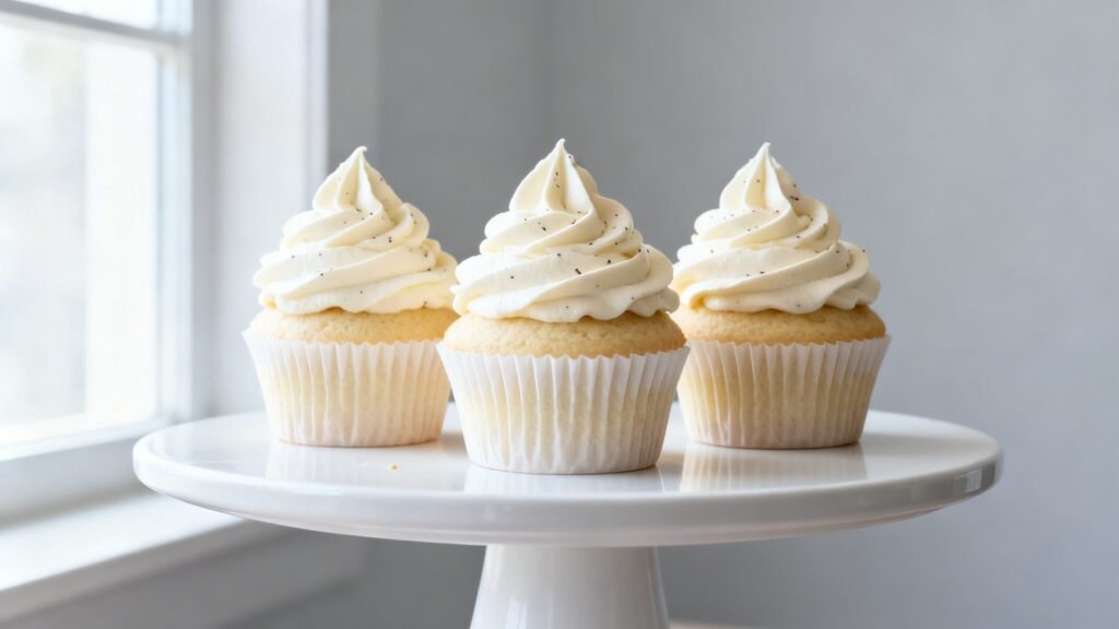 - Whisk in eggs one at a time, then vanilla. The mixture should look shiny and cohesive.